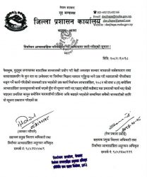 यस्ता गतिविधि निर्वाचन आचारसंहिता, २०८२ को दफा ४ (ख) बमोजिम आचारसंहिता उल्लङ्घन हुने भएकाले तत्काल रोक्न निर्देशन दिइएको छ। सूचना जारी भइसकेपछि पनि कसैबाट यस्ता कार्य भएको पाइएमा प्रचलित कानुन बमोजिम कारबाही प्रक्रिया अघि बढाइने जिल्ला प्रशासन कार्यालयले जनाएको छ।