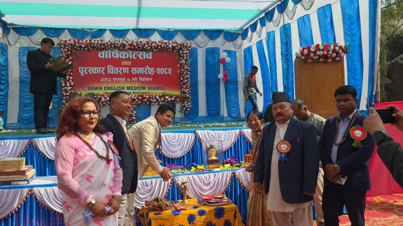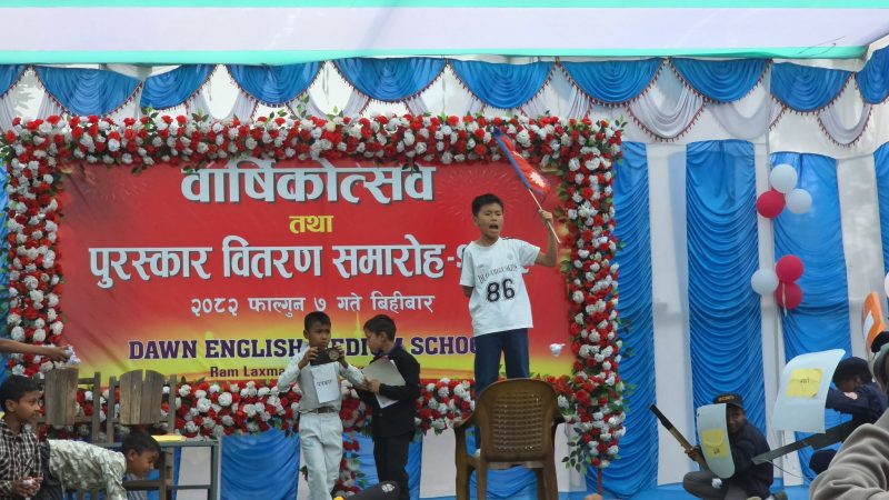 विराटनगर । विराटनगर १ मा रहेको डान बोर्डिङ स्कुलले बिहीबार आफ्नो वार्षिकोत्सव तथा पुरस्कार वितरण कार्यक्रम भव्य रूपमा मनाएको छ । स्कुल परिसरमा आयोजित विशेष समारोहमा विद्यार्थीहरूले प्रस्तुत गरेको मर्मस्पर्शी नाटकले उपस्थित अतिथि तथा अभिभावकहरूलाई भावविह्वल बनाएको थियो ।