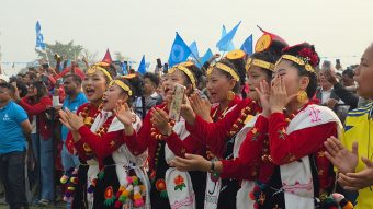 यता कार्यक्रममा सिलाम साक्मा छातिमा सजाएर केहीबेरपछि रवी लामीछाने र बालेनको उपस्थित भईरहँदा हुटिङ र घन्टीले माहोल तातिएको थियो । उनीहरु दुवैलाई थारु कल्चरको गम्छाले टाउकोमा लगाएर स्वागत गरियो भने थारु सास्कृतिक गीतले पनि स्वागत गरिरहँदा रवी र बालेनले पनि बाजा बजाएर साथ दिईरहेका थिए ।