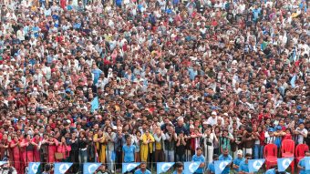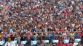अधिकास वृद्धवृद्धा आमा बुबाहरुलाई अगाडीपटी कुर्सिमा राखिएको थियो भने त्यसको पछिल्लो भागमा युवा तथा विद्यार्थीहरुको बाक्लो उपस्थिती देखिन्थ्यो । निलो भेष्ट तथा निलो क्याप टोपीमा सजिएका रास्वपाको भोलेन्र्टसहरुले असक्क्त तथा वृद्धाहरुलाई बस्नको लागि सहज बाताबरण पनि बनाईरहेका थिए । कतिपय दर्शक तथा समर्थकहरु हातमा घन्टी र झण्डा बाकेर घरको छत र बार्दलीबाट समेत कार्यक्रम हेर्न भ्याईरहेका थिए ।