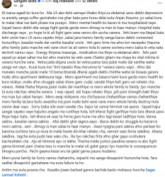 सागर लम्साललाई समेत ट्याग गरिएको उक्त पोस्टअनुसार दुवै जनाबीच पारिवारिक रूपमै चिनजान थियो । युवतीले उनलाई ‘दाइ’ भनेर सम्बोधन गर्थिन् । लम्साल अमेरिका गएका बेला युवतीसँग भेट भएको थियो । नेपाल हुँदादेखि नै एन्जाइटी र डिप्रेसनजस्तो मानसिक समस्यासँग जुधिरहेको बताउने युवतीले आफ्ना बुबाको सुझावपछि नै लम्साललाई भेटेकी थिइन् ।