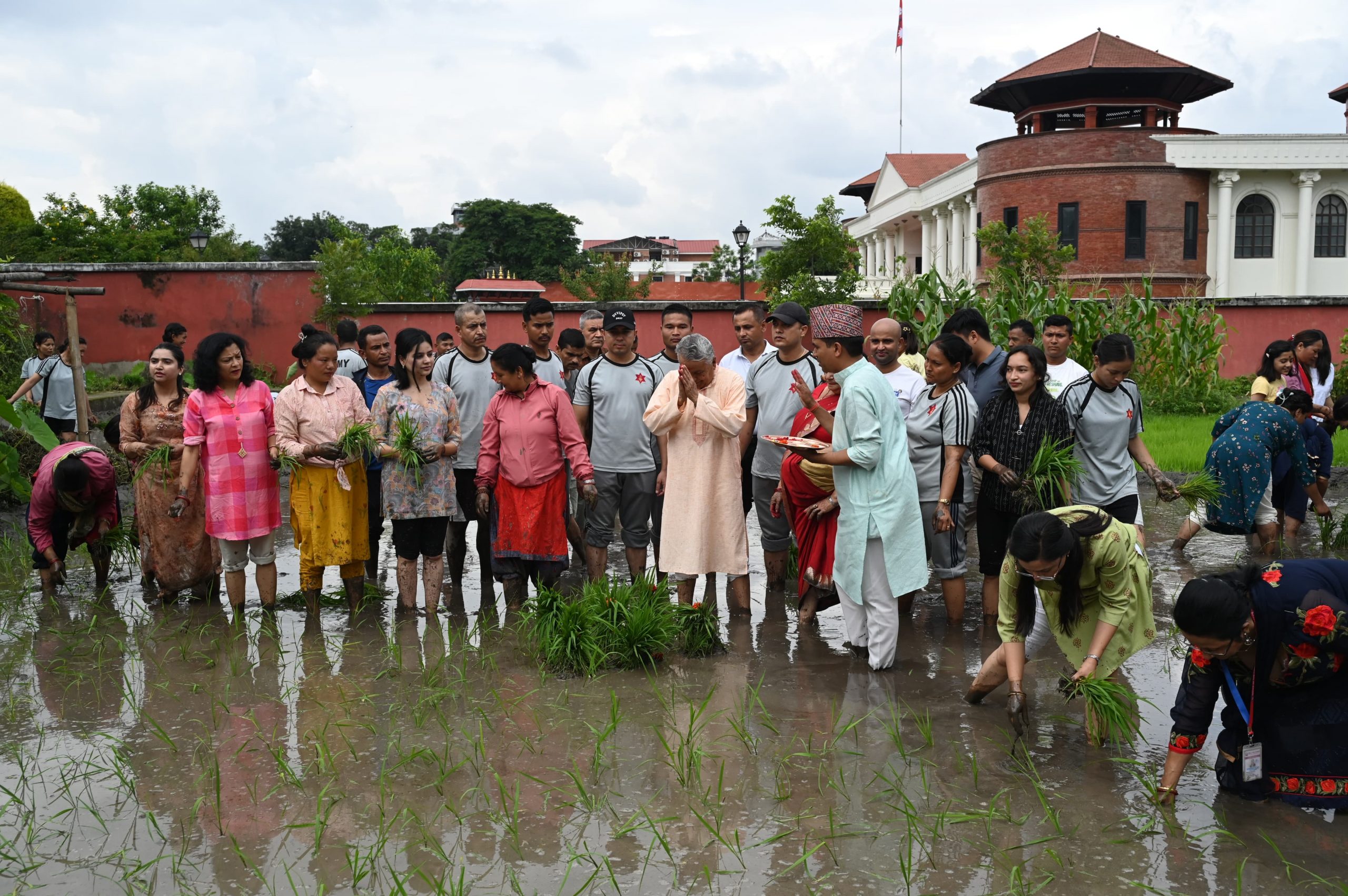 काठमाडौ । असार १५ अर्थात धान दिवसको उपलक्ष्यमा राष्ट्रपति भवन शीतल निवासमा रोपाइँ गरिएको छ । राष्ट्रपति कार्यालयद्धारा आयोजित रोपाइँ कार्यक्रममा राष्ट्रपति रामचन्द्र पौडेल, प्रथम महिला सबिता पौडेल सहभागी भएका थिए । रोपाइँ शुभारम्भ गर्दै राष्ट्रपति पौडेलले कृषिलाई आधुनिकीकरण गर्दै जीवन निर्वा. . .