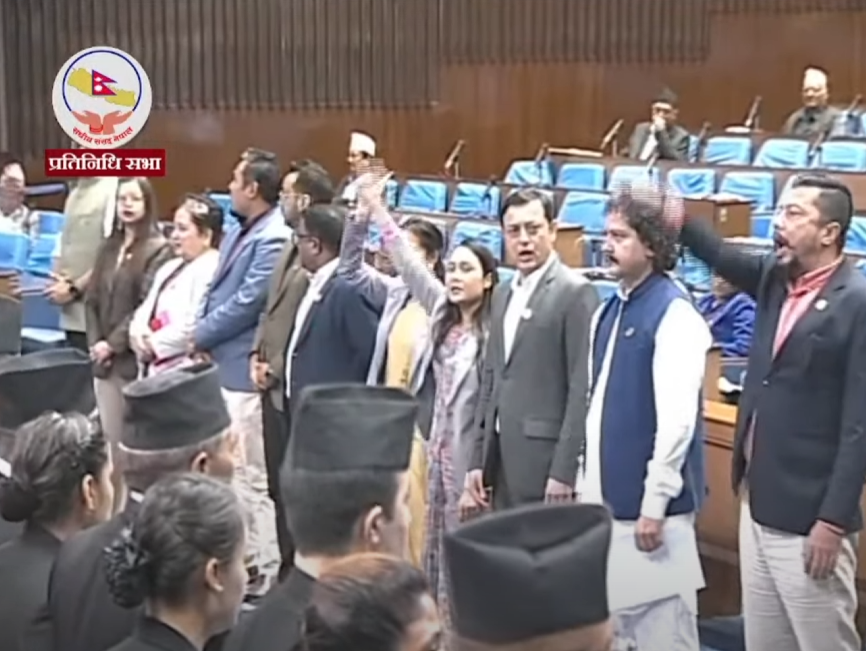 काठमाडौं । राष्ट्रिय स्वतन्त्र पार्टी (रास्वपा) र राष्ट्रिय प्रजातन्त्र पार्टी (राप्रपा) का सांसदहरूले आज पनि प्रतिनिधिसभाको बैठक अवरुद्ध पारेका छन् । सोमबार सभामुख देवराज घिमिरेले बैठक सुरु गरेलगत्तै रास्वपा र राप्रपाका सांसदहरू आ–आफ्नो ठाउँबाट उठेर विरोध गरेका हुन् । यद्यपी, सभामुखले प्रतिपक्. . .