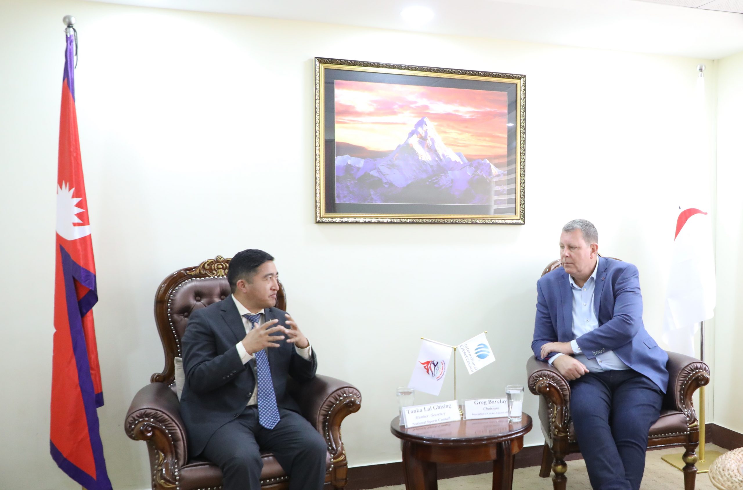 काठमाडौं । राष्ट्रिय खेलकुद परिषद् (राखेप) का सदस्य–सचिव टंकलाल घिसिङ र अन्तर्राष्ट्रिय क्रिकेट काउन्सिल (आईसीसी) अध्यक्ष ग्रेग बारक्लेबीच मंगलबार भेटवार्ता भएको छ । भेटमा सदस्य सचिव घिसिङले अन्तर्राष्ट्रिय प्रतियोगिता नेपालमा आयोजना गर्ने वातारण बनाईदिन आग्रह गर्दै नेपाललाई प्राविधिक पक्ष, खेल. . .