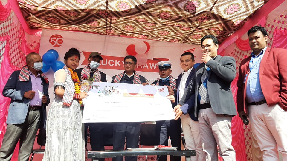 विराटनगर । होन्डाले दशैं र तिहारलाई लक्षित गरि ल्याएको ‘होन्डा छ साथ ७’ अफरमा रविना चौधरीले एक लाखको पुरस्कार जितेकी छिन् । नेपालका लागि होन्डा मोटसाइकल तथा स्कुटरको आधिकारिक बिक्रेता स्याकार ट्रेडिङ कम्पनी प्रा.लि.ले ल्याएको अफर अन्तर्गतको १ नंं. प्रदेशबाट चौधरीले १ लाखको पुरस्कार जितेकी हुन् । लक�. . .