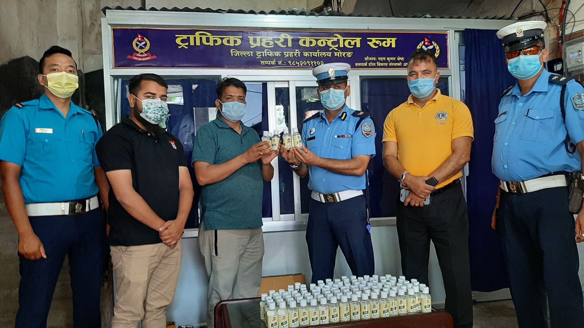 बिराटनगर । नेपाल घरेलु महासंघ मोरङका उपाध्यक्ष ब्यवसायी गोपाल काफ्लेद्वारा जिल्ला ट्राफिक प्रहरी मोरङलाई १०८ थान सेनिटाइजर हस्तान्तरण गरिएको छ । ब्यवसायी काफ्लेले बिगतको लकडाउन देखिन्नै अग्रपंक्तिमा खटिने सुरक्षाकर्मी स्वास्थ्यकर्मी र पत्रकारलाई सहयोग गर्दै आएका छन् । यसैविच शनिबार कार्याल�. . .