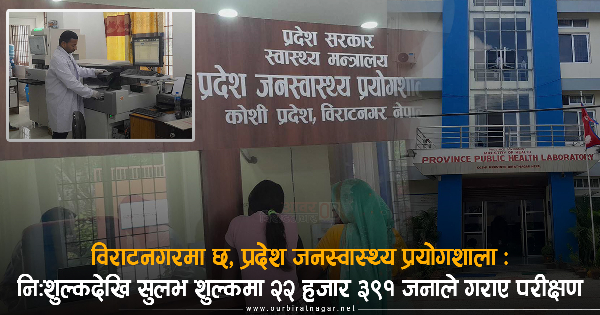 विराटनगर । कोशी प्रदेश सरकारले विराटनगरमा स्थापना गरेको प्रदेश जनस्वास्थ्य प्रयोगशालाले १४ जिल्लामै सेवा विस्तार गरेको छ । जिल्ला अस्पताल तथा नगर अस्पतालसँगमा संकलन भएका नमूना निःशुल्क ढुवानीमार्फत जनस्वास्थ्य प्रयोगशाला विराटनगर ल्याएर परीक्षणमार्फत सेवा प्रदान गर्न थालिएको हो । २०८२ बैशाख �. . .