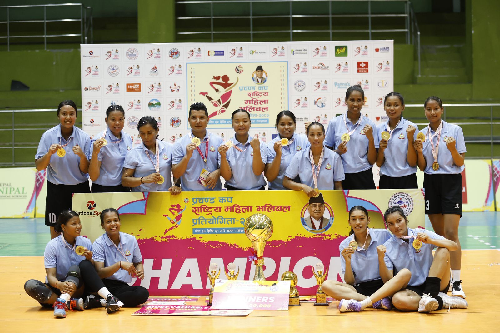 कास्की । पोखरामा सञ्चालन भएको ‘प्रचण्ड कप’ राष्ट्रिय महिला भलिबल प्रतियोगिताको उपाधि सशस्त्र प्रहरी बल नेपालको एपिएफ क्लबले जितेको छ । पोखरा रङ्गशालास्थित बहुउद्देश्यीय कभर्ड हलमा आज सम्पन्न फाइनल खेलमा अर्को विभागीय टोली नेपाल पुलिस क्लबलाई ३–० को सोझो सेटमा निराश पार्दै एपिएफ च्याम्पियन बन्य�. . .