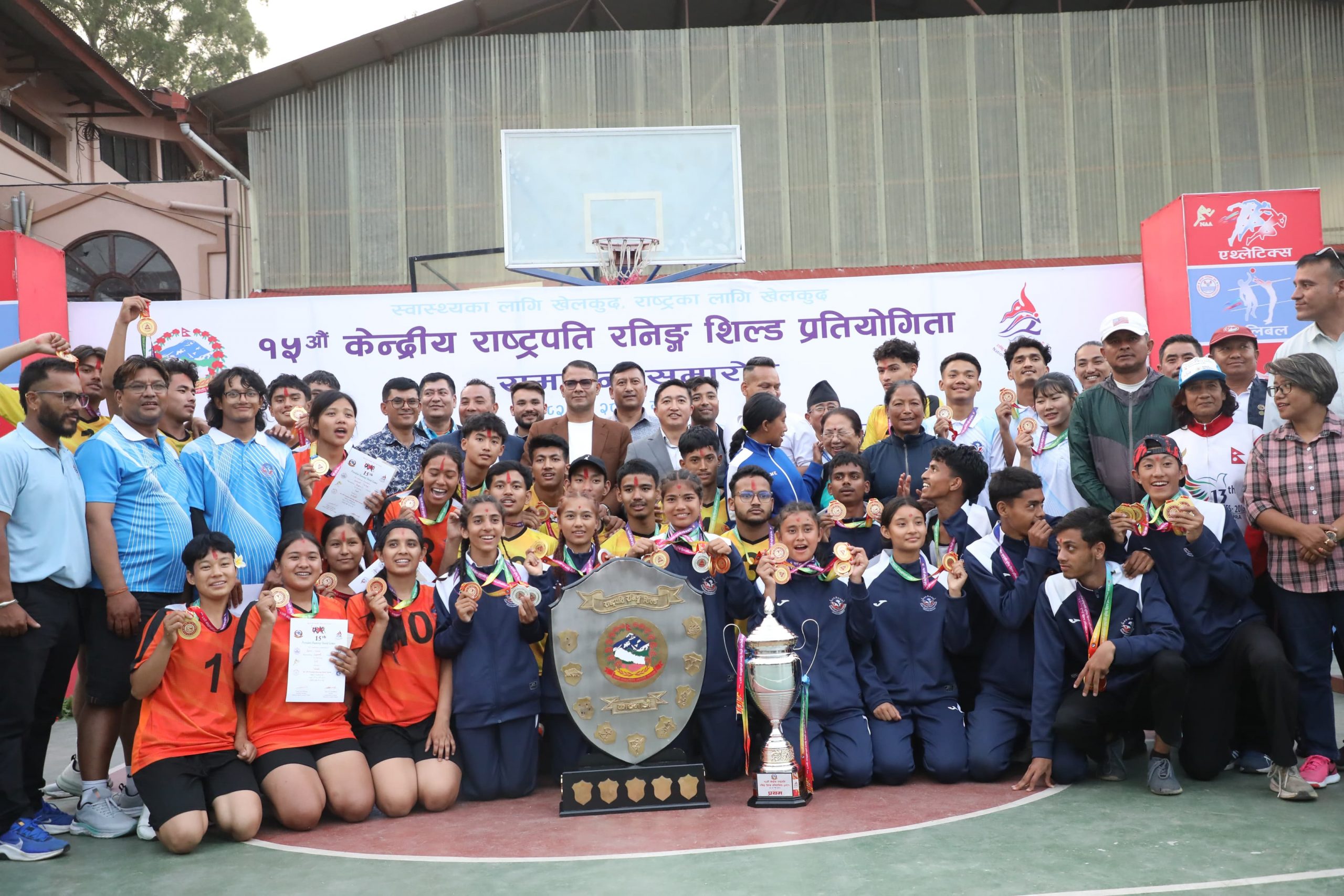 काठमाडौं । बागमती प्रदेशले १५ औं केन्द्रीय राष्ट्रपति रनिङ खेलकुद प्रतियोगिताको उपाधि हात पारेको छ । बागमती ३६ स्वर्ण, ७ रजत र ११ कांस्यसाथ ७ प्रदेश सहभागी प्रतियोगितामा समग्रमा टिम च्याम्पियन बन्यो । युवा तथा खेलकुद मन्त्रालयको तत्वावधान तथा राष्ट्रिय खेलकुद परिषद् (राखेप)को आयोजनामा भएको प्रति�. . .