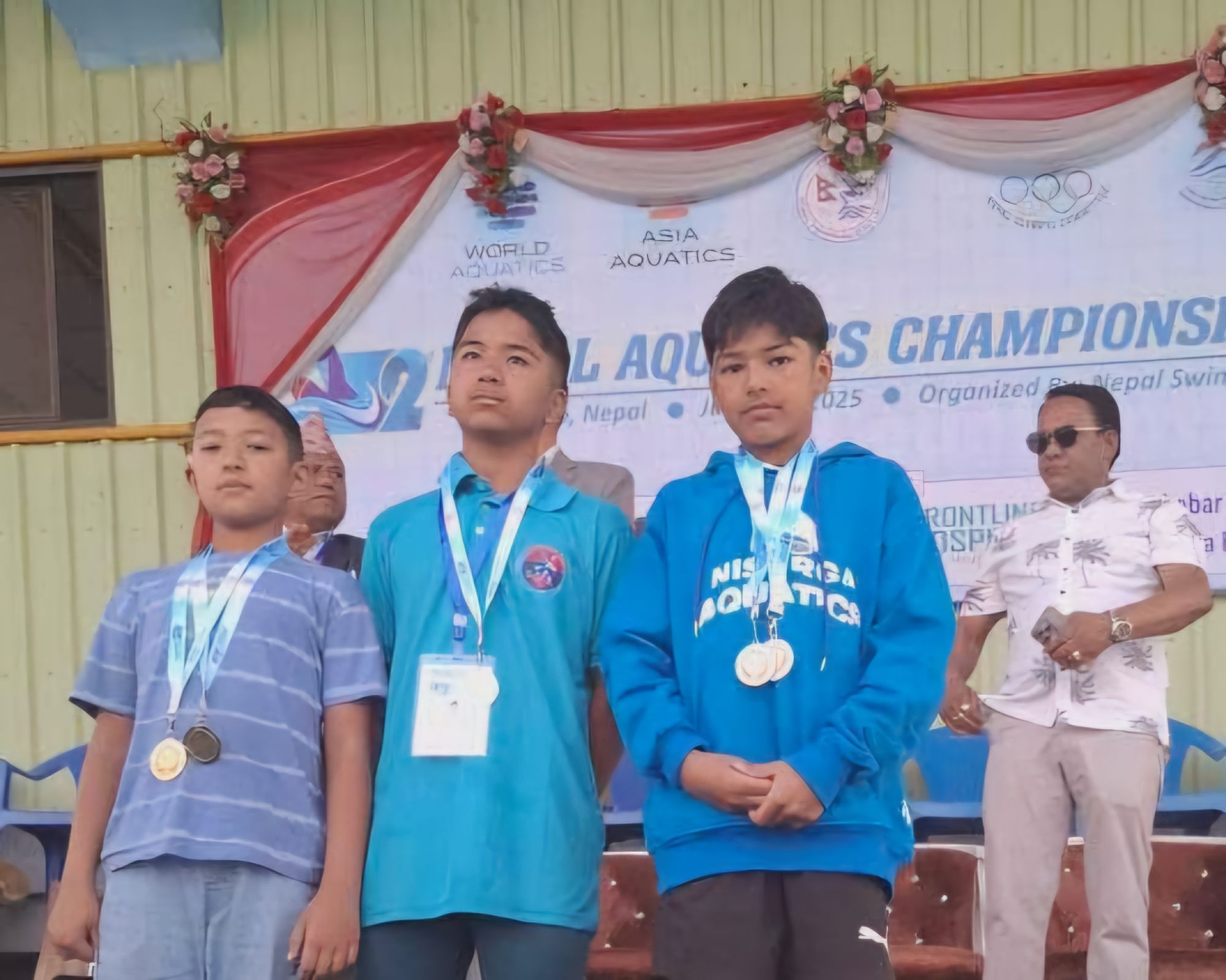 विराटनगर । नेपाल पौडी संघको आयोजनामा जारी दोस्रो संस्करणको नेपाल अक्वाटिक्स पौडी प्रतियोगितामा विराटनगरका जिग्सन तामाङले स्वर्ण पदक जितेका छन् । सातदोबाटो ललितपुरको आउटडोर पौडी पोखरीमा शनिबार भएको स्पर्धामा विराटनगरस्थित एभरेष्ट सेकेन्डरी स्कुल पढ्ने तामाङले स्वर्ण पदक जितेका हुन् । उनले ५६ �. . .