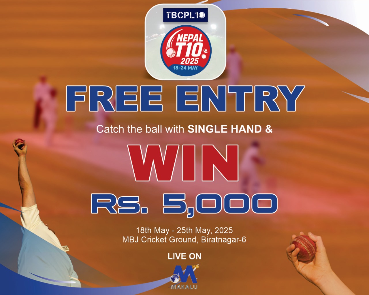 आजबाट विराटनगरमा नेपाल टी-१० क्रिकेट, दर्शकले बल एक हातले समाते ५ हजार पुरस्कार