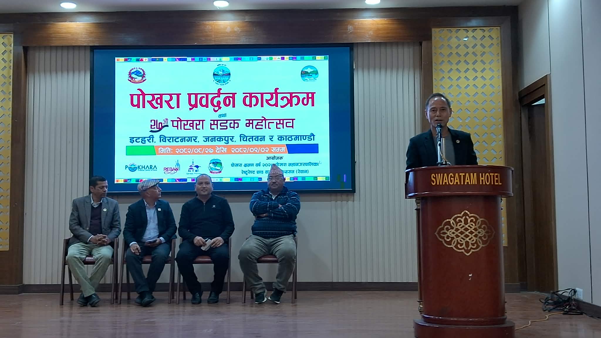 विराटनगर । ‘२७ औं पोखरा सडक महोत्सव’ को प्रचार प्रसार एवं प्रवद्र्धन गर्ने उद्येश्यका साथ पोखराका पर्यटन व्यावसायीहरु यतिबेला पुर्वी सहरमा आईपुगेका छन् । पोखरा भ्रमण वर्ष २०२५ साथै पोखरा सडक महोत्सवलाई भव्य र सव्य बनाउनको लागि उनीहरु विगत केहीदिनयता मुलुकका प्रमुख शहरहरुमा निम्ता दिन आईपुगेका हुन�. . .