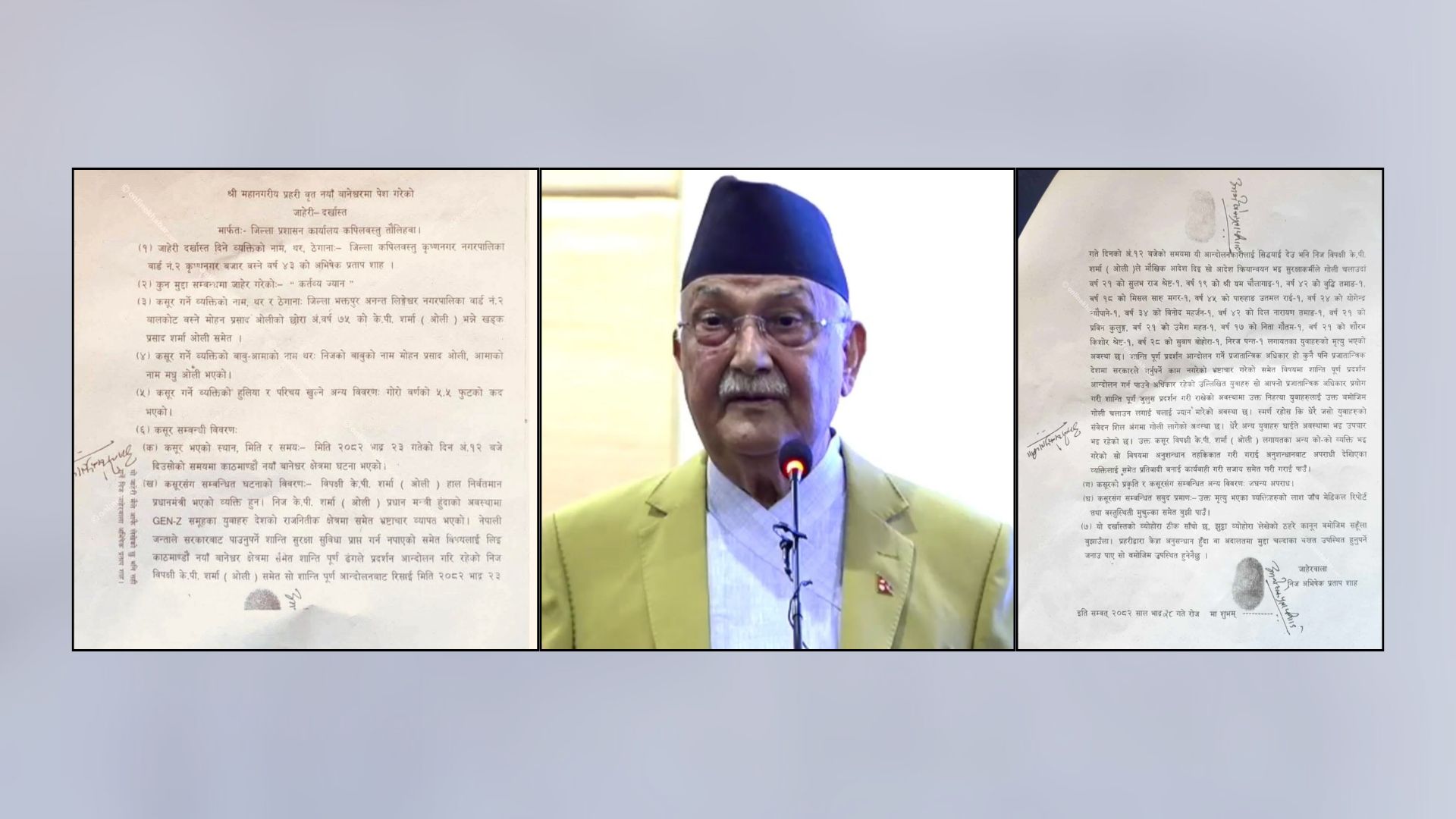 काठमाडौं । निवर्तमान प्रधानमन्त्री केपी शर्मा ओलीविरुद्ध कर्तव्य ज्यान मुद्दामा जाहेरी परेको छ । जेनजी पुस्ताका युवाहरूको शान्तिपूर्ण प्रदर्शनमा हिंसा मच्चाएको भन्दै नेपाली कांग्रेसका नेता एवं पूर्व सांसद अभिषेक प्रताप शाहले महानगरीय प्रहरी वृत्त नयाँ बानेश्वरमा जाहेरी दिएका हुन् । जाहेर�. . .