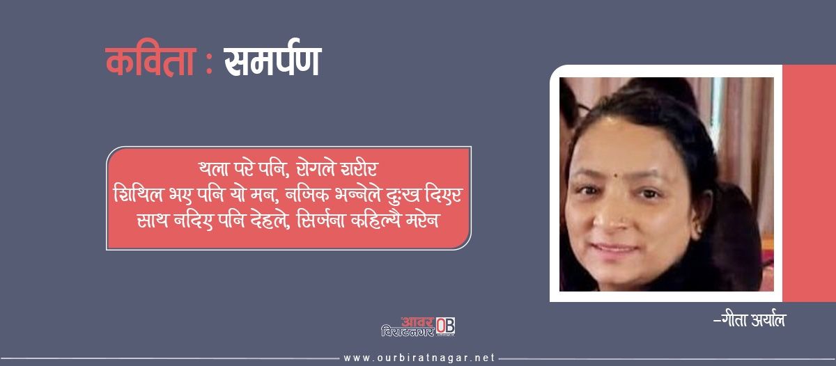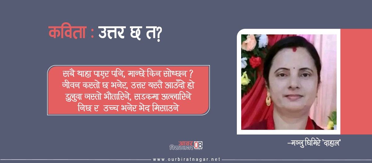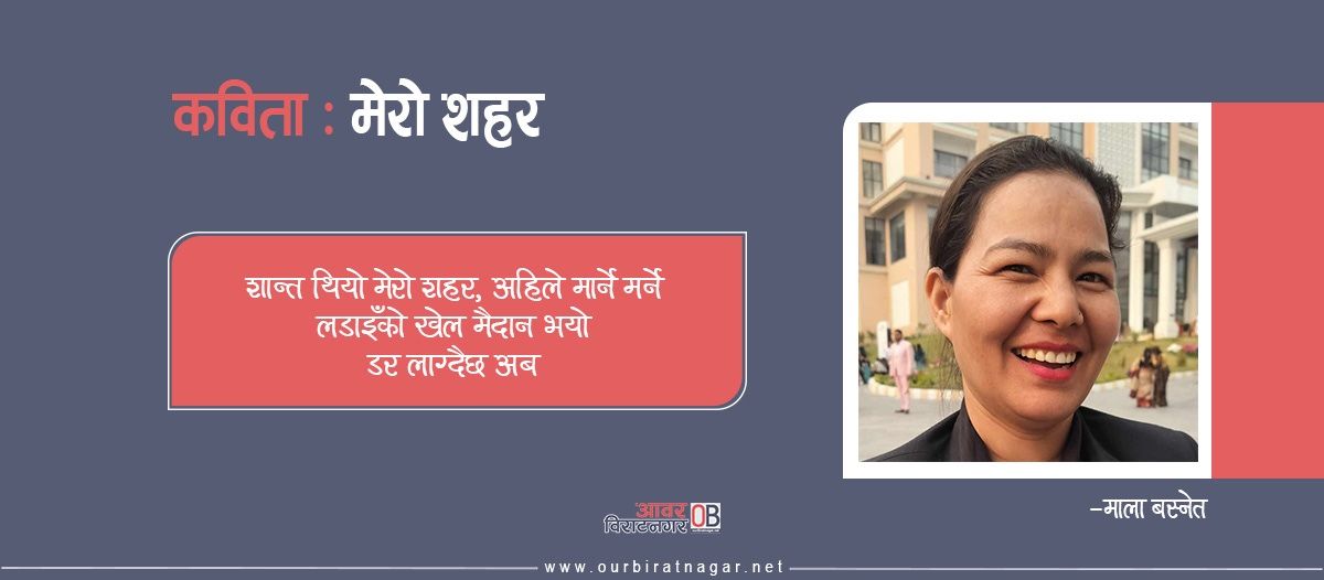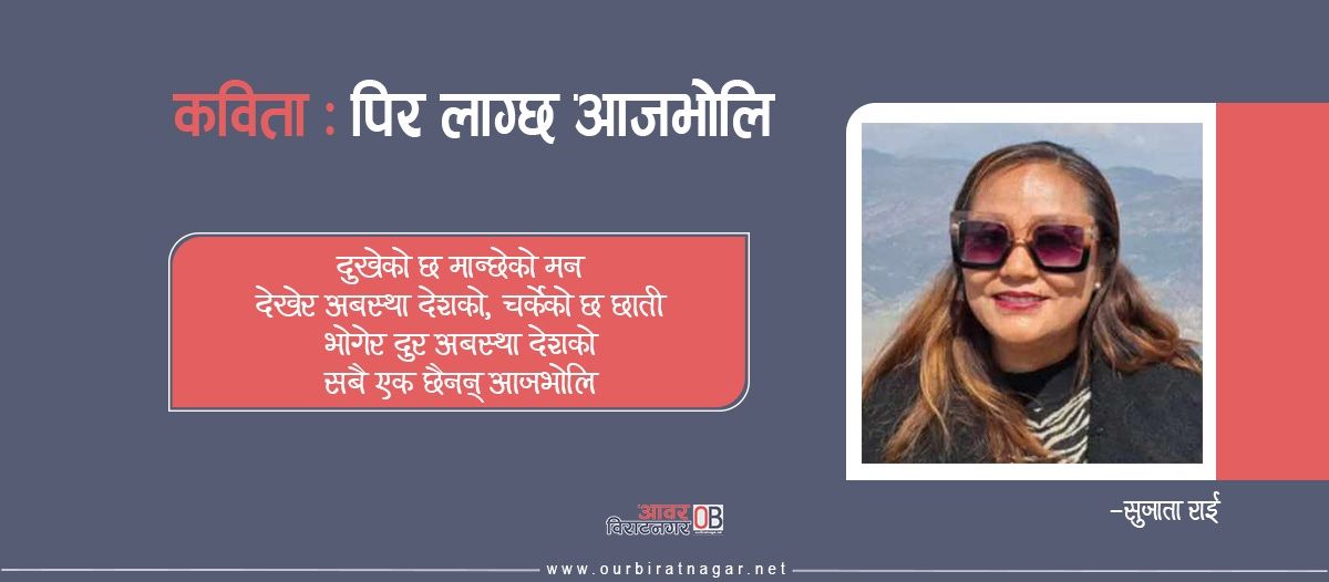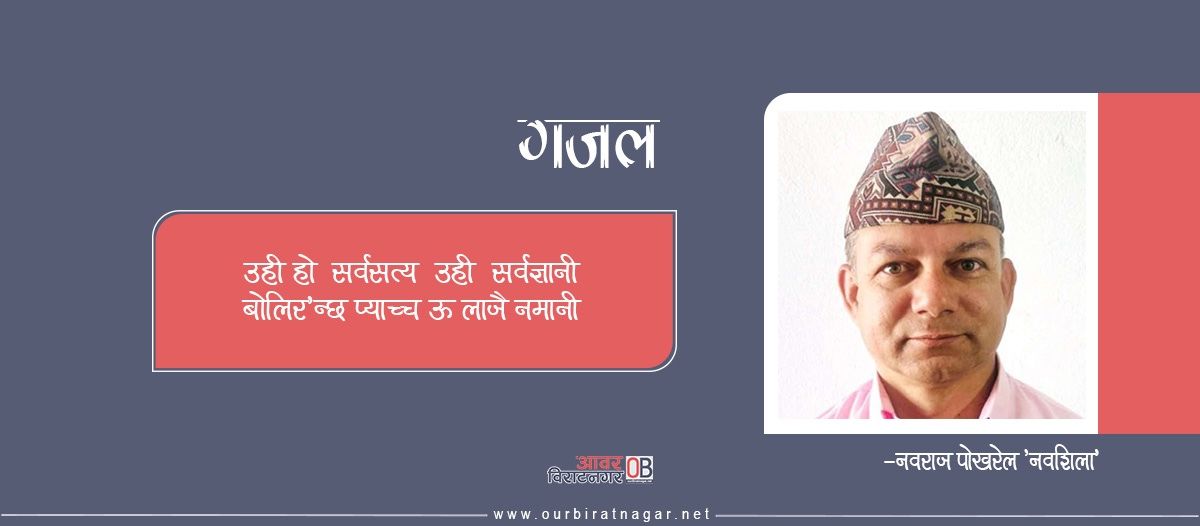 अब आफ्नै जवानी बोझ लाग्न थाल्यो, सानो छाँयामा रमाएको बाल्यकाल सम्झिँदा मनमा डर लाग्न थाल्यो। जिम्मेवारीको पहाड काँधमा, र सपनाको तुफान मनमा ।। एक्लै, विरान सहरमा, किन खै आजकल आफ्नै जवानी बोझ लाग्न थाल्यो । अधुरा सपना छन्, अधुरा रहर छन्, कहिले पूरा होलान्? "आफ्नै भइदेऊ" भनेर भन्छिन् आमा, तर कहिले साँचो घर. . .