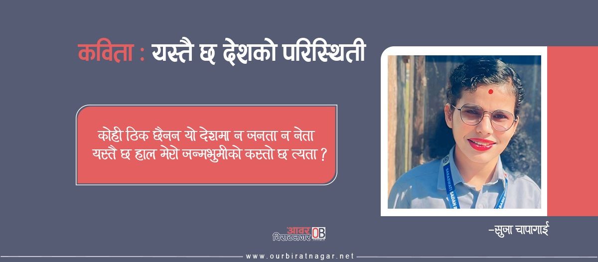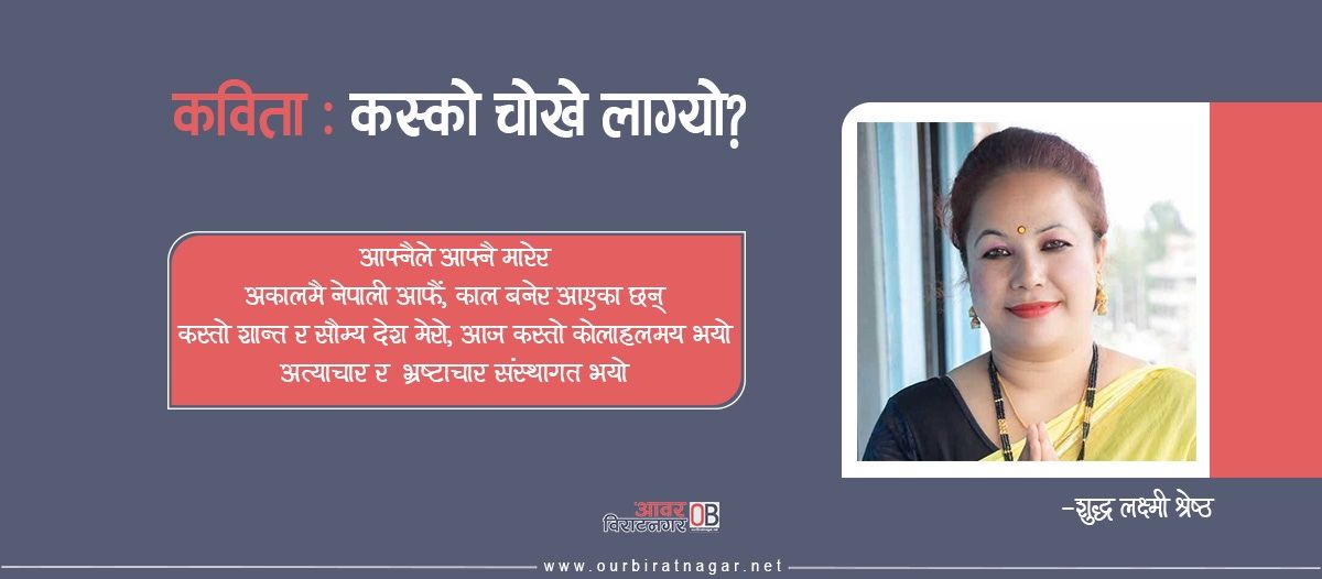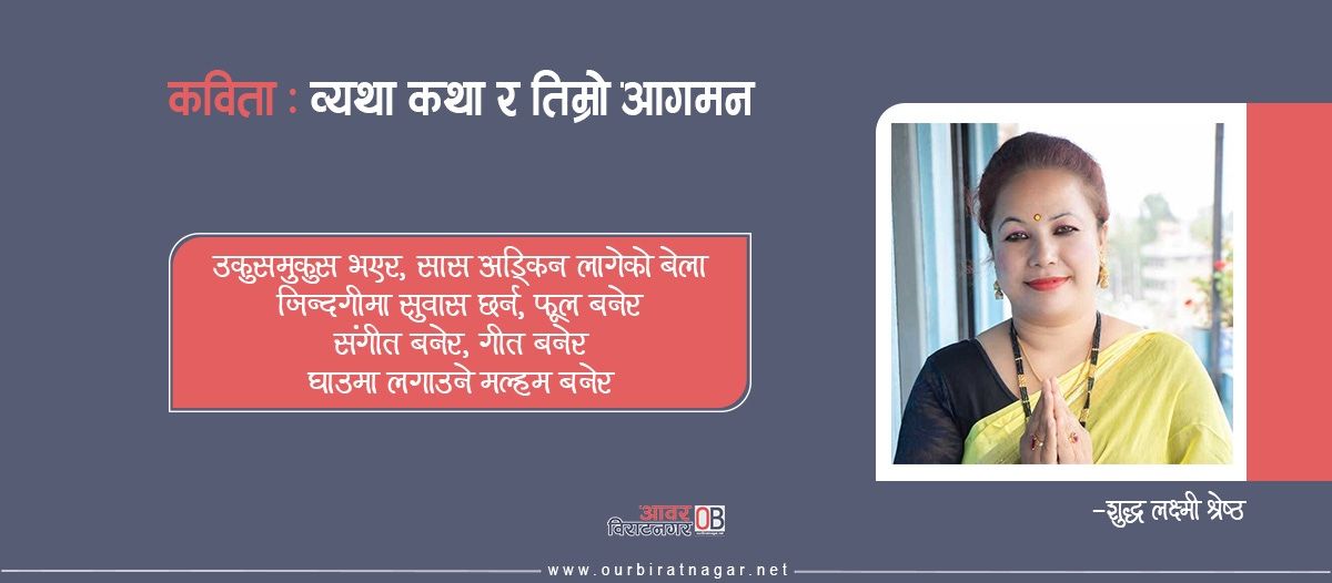 आकाश छोप्ने छाना, मुरी उमार्ने माटो छैन गुजुमुज्ज घरहरु चिसामा न्यानो ताप्ने आँगन पनि छैन बलियो पाखुरा हुनेहरु मुग्लान पस्छन कमजोर हातहरु ऋणका भारीले थिचिएर बन्दी जीवन बाँच्न बाध्य हुन्छन । गाउँका प्रत्येक घर सुनसान छ टुकिकाे धिप धिपे बत्तीमा बृध्द अनुहार, उदास यौवन मात्र देखिन्छ बाँझो बारी, सु�. . .
