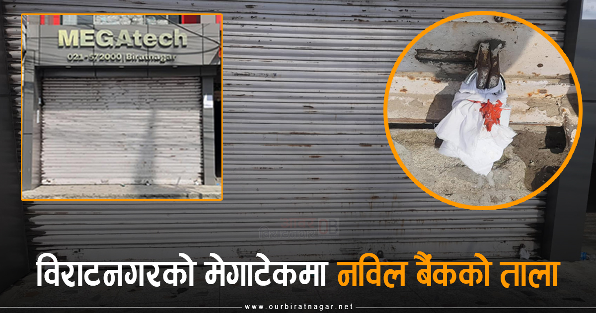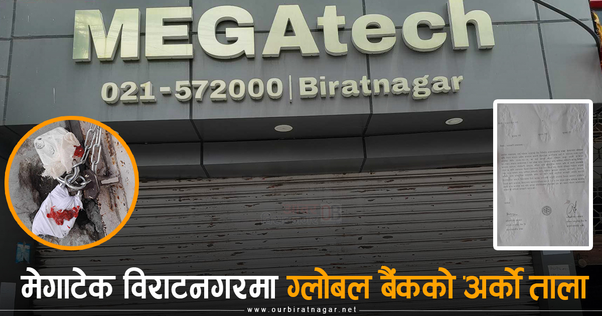 विराटनगर । विराटनगर मेनरोडस्थित मेगाटेक सोलुसनमा नविल बैंकले बुधबार तालाबन्दी गरेको छ । देशभर मेगाटेक सोलुसन चर्चित कम्प्युटर तथा इलेक्ट्रोनिक उपकरणको विक्रेता कम्पनी हो । विराटनगरका लागि बैंकले प्रवाह गरेको व्यवसाय कर्जा समयमै भुक्तानी नगरेपछि यसको बिक्री कक्षमा तालाबन्दी गरिएको हो । बुधबार ब�. . .