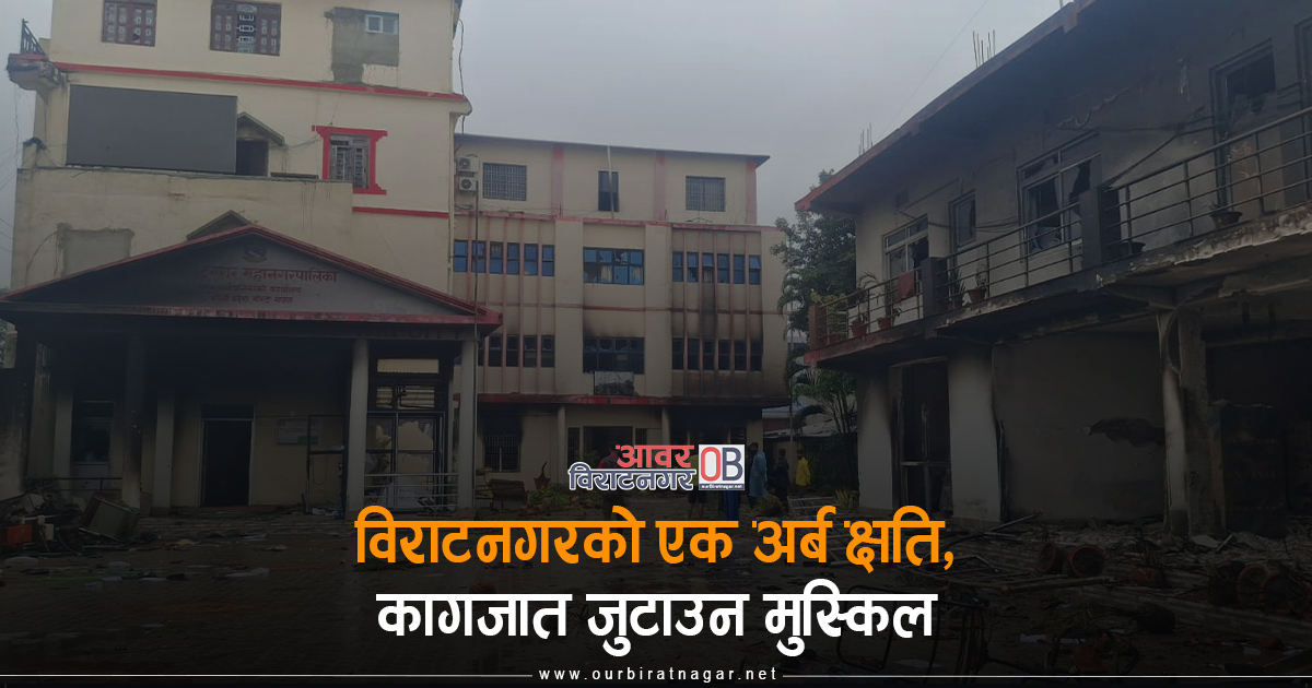 विराटनगर । गत भर्दौ २४ गते जेनजी नामको आन्दोलनमा भएको आगजनीबाट विराटनगर महानगरपालिकाको मात्रै एक अर्ब हाराहारी क्षति भएको छ । भौतिक संरचना र अन्य जिन्सी सामान समेत जल्दा यो क्षति बेहोर्नु परेको हो । विराटनगर महानगरपालिकाका मेयर नागेश कोइरालाका अनुसार भौतिक संरचनातर्फ २३ करोड ३७ लाख ५८ हजार २३४ रुपै. . .