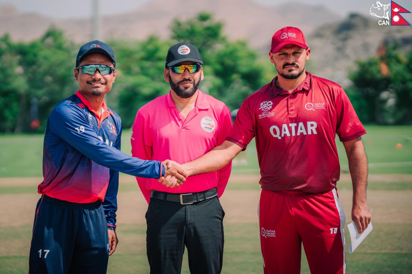 काठमाडौं । आईसीसी टी–२० विश्वकपको छनोटको तयारीमा रहेको नेपाली टोलीले आज कतारविरुद्ध पहिले ब्याटिङ गर्ने भएको छ । नेपालले टस जितेर ब्याटिङ रोजेको हो । अब कतार बलिङमा उत्रिने छ । विश्वकप छनोटअघि अभ्यास खेल खेलिरहेको नेपालले आज कतारसँग प्रतिस्पर्धा गर्न लागेको हो । यसअघि भएको ओमानविरुद्धको म्याचमा �. . .