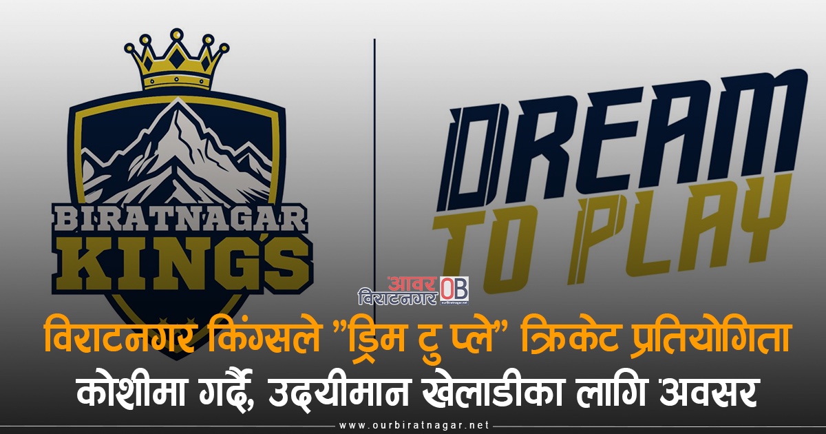 विराटनगर असोज २३, विराटनगर किंग्सले कोशी प्रदेश क्रिकेट संघको सहकार्यमा उदयीमान खेलाडीहरूको प्रतिभा प्रदर्शनका लागि “Dream to Play Tournament” क्रिकेट प्रतियोगिताको घोषणा गरेको छ। कोशी प्रदेशका पाँच जिल्लाहरू झापा, मोरंग, सुनसरी, उदयपुर र इलामका अण्डर–२३ टोलीहरू सहभागी हुने यस प्रतियोगिता टि–ट्वेन्टी फर्म्या. . .
