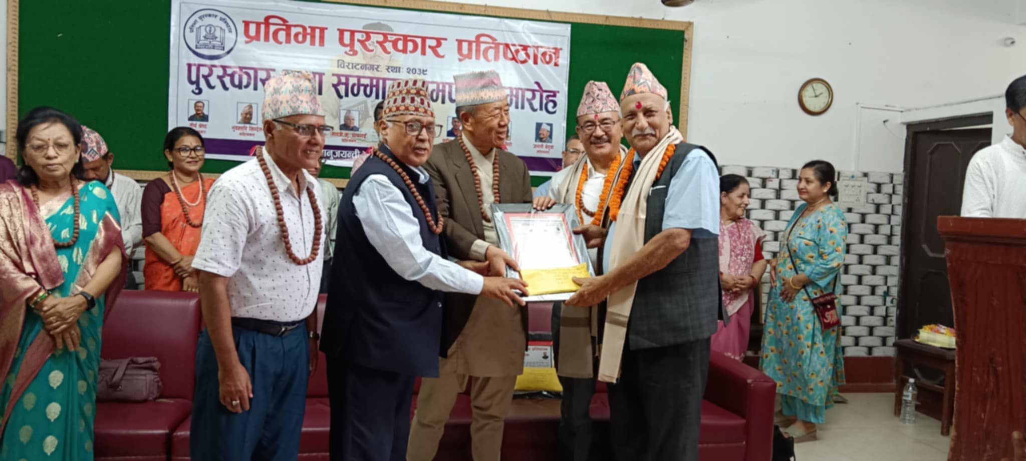 विराटनगर । वरिष्ठ समाजसेवी दीनबन्धु गोयलबाट स्थापित दीनबन्धु–उषादेवी गोयल प्रतिभा पुरस्कार साहित्यकार भुवनहरि सिग्देललाई प्रदान गरिएको छ । समाजसेवी गोयलले प्रतिभा पुरस्कार प्रतिष्ठान मार्फत स्थापना गरेको ५० हजार नगद राशिसहितको पुरस्कार साहित्यकार सिग्देललाई प्रदान गरिएको हो । कोशीका प्रदेशप. . .