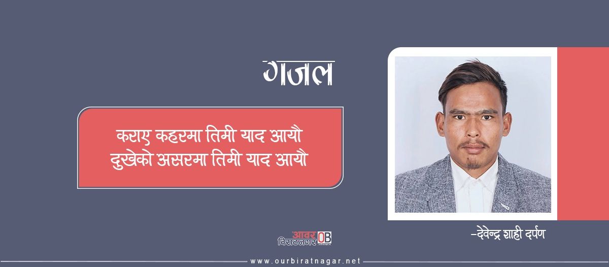 -भूपाल अधिकारी हर सन्त कुटीमा अब उत्पात हुँदै छ दानवको हुँदा राज खुराफात हुँदै छ निर्यात गरिदैछ कि मुग्लान युवा नै घरभित्र खुबै लासको आयात हुँदै छ छेक्दै छ सहर गाउँ अचानक कुहिरोले दिनरात चिसो वायुले हिमपात हुँदै छ अनमोल खसे वस्तु नयनबाट उनैका घनघोर त्यहाँ आँसुको बर्सात हुँदै छ उनलाई गरी प्रेम म�. . .