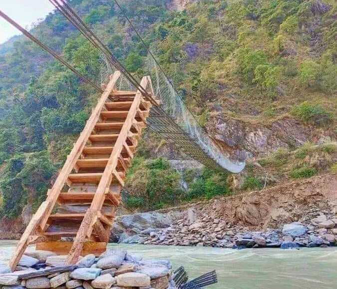 काठमाडौं । आइतबारदेखि सामाजिक सञ्जालमा एउटा फोटो ‘भाइरल’ भएको छ । आधा भत्किएको झोलुङ्गे पुलको बीचबाट पुलमा चढ्न मिल्ने गरी बनाइएको आकर्षक काठेपुल रमाइलो विषय बनेको छ । तर त्यस्तो पुलको दुःखको कथा अर्कै छ । कर्णाली प्रदेशको कालीकोट जिल्लाको जिते कर्णालीमा कर्णाली नदी तर्नका लागि स्थानीयले गरेको वै�. . .