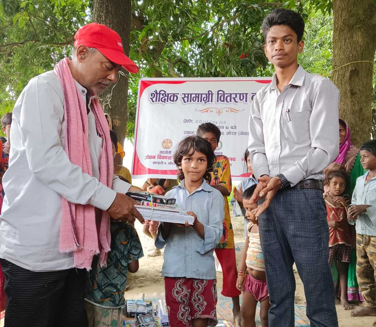 विराटनगर । विराटनगर महानगरपालिका १४ मा रहेको सुकुम्बासी विष्णु टोलका विपन्न परिवारका विद्यार्थीहरूलाई शैक्षिक सामाग्री वितरण गरेको छ । बुधबार एक कार्यक्रम आयोजना गरी विपन्न परिवारका २३ जना विद्यार्थीहरूलाई शैक्षिक सामाग्री वितरण गरेको हो। जीवन विकास समाज कटहरी- २ को सहयोगमा र नव बुद्ध युवा क्लब . . .