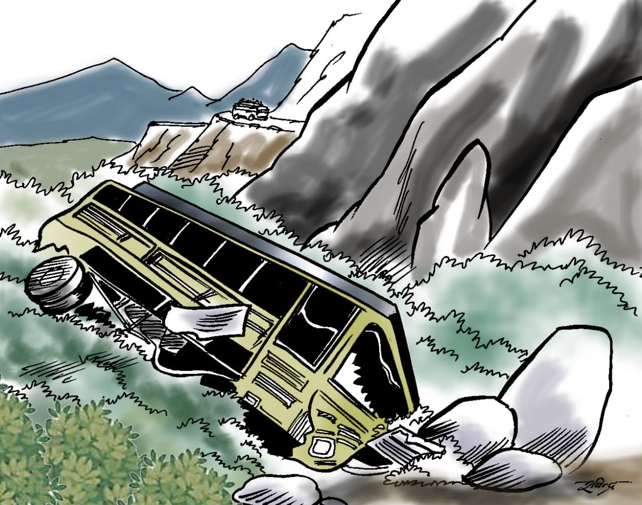 विराटनगरबाट झापा जाँदै गरेको बस दुर्घटना, बस कन्डक्टरसहित दुईको मृत्यु