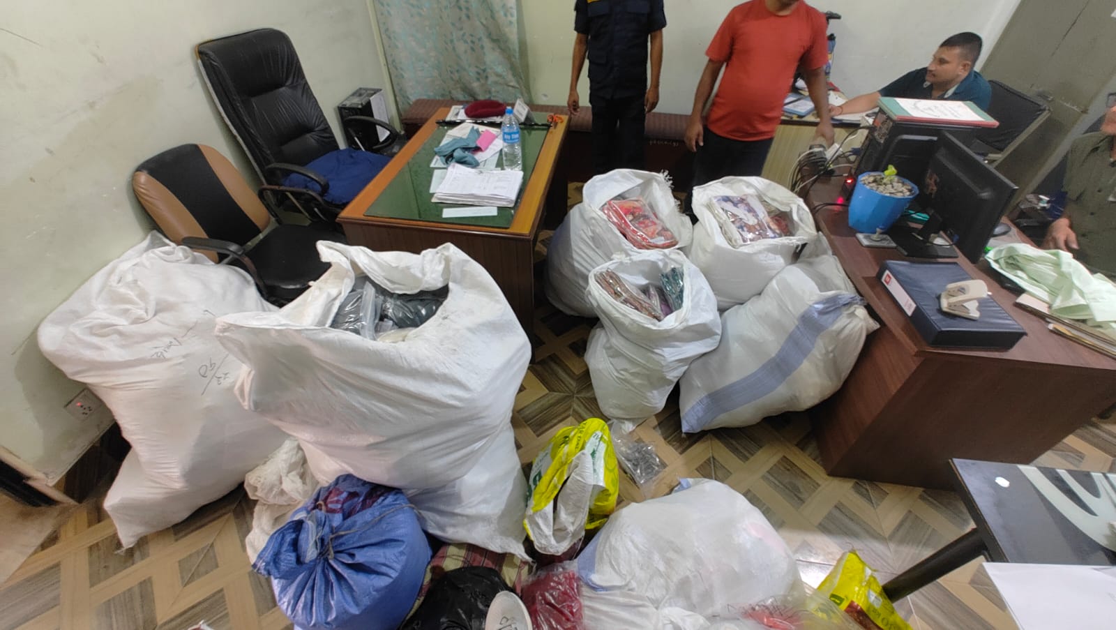 विराटनगर । विराटनगरमा भारतबाट अवैध भित्र्याइएको नौलाख ५७ हजार बराबरको लत्ताकपडा प्रहरीले बरामद गर्दा यसको धनी भने फरार भएको जनाएको छ । प्रहरीले सोमबार बिहान विराटनगर ७ बाट यति ठूलो परिमाणमा लत्ताकपडा बरामद गरेको हो । लत्ता कपडासँगै ५४ हजार मूल्य बराबरको किरानाका सामान समेत बरामद गरेको छ । नियमित चे. . .