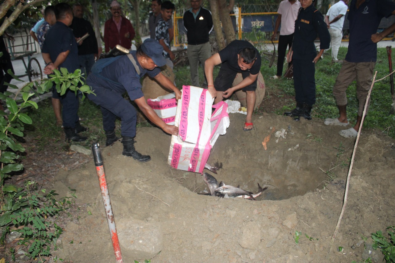 विराटनगर । विराटनगर–६ केशलिया पुल नजिकबाट प्रहरीले नियन्त्रणमा लिइएको रहु र सिद्रा माछा नष्ट गरिएको छ । शनिबार साँझ केशलिया खोलामा वेवारिसे अवस्थामा रहेको भनिएको ५० केजी रहु र ५० केजी सिद्रा माछा प्रहरीले नियन्त्रणमा लिएर नष्ट गरेको जानकारी दिइएको हो । मोरङ प्रहरी प्रवक्ता कोपिला चुडाँलले फममा रह�. . .