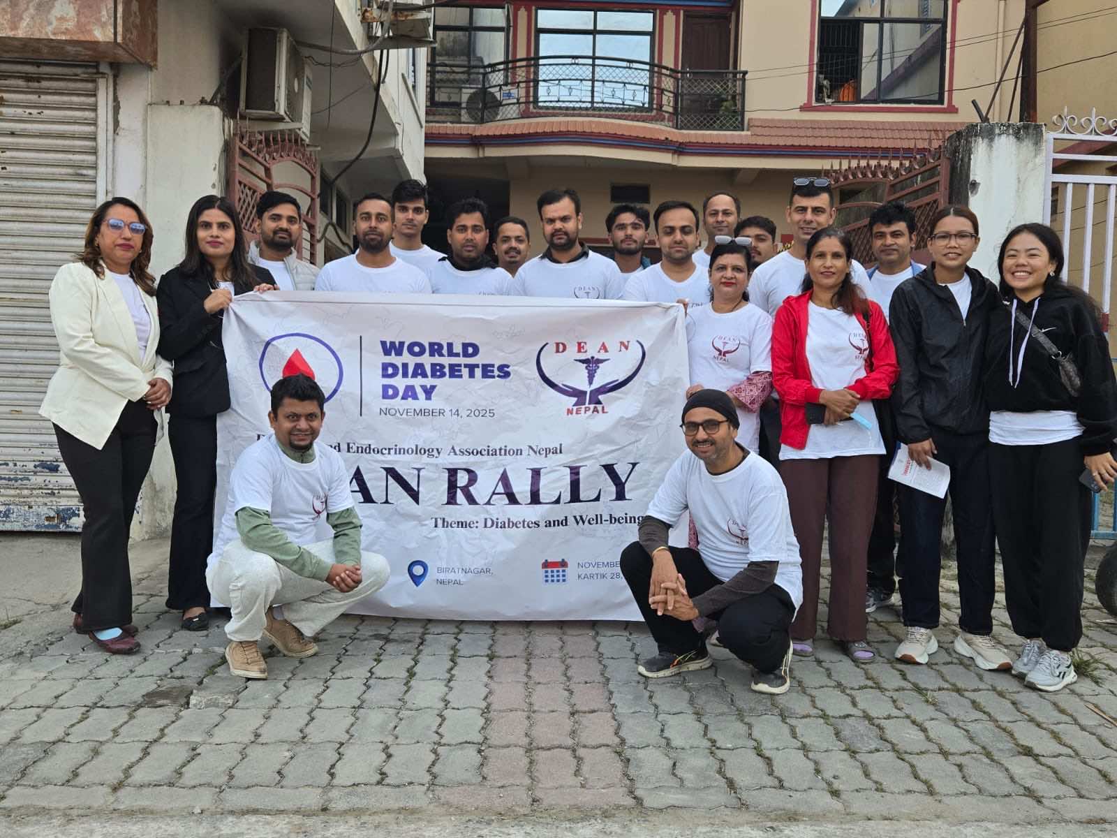 विराटनगर, नेपाल – कार्तिक २८, २०८२ (नोभेम्बर १४, २०२५) – विश्व मधुमेह दिवसको अवसरमा आज बिहान डायबिटीज एण्ड इन्डोक्राइनोलोजी एसोसिएसन नेपाल (डिन) ले विराटनगरमा "डिन र्याली" नामक जनचेतनामूलक कार्यक्रम आयोजना गरेको छ। इन्डोक्राइनोलोजिस्ट डा. प्रताप रोयको पहलमा, समर्पित डाक्टरहरू र समुदायका सहभागीहरूको स. . .