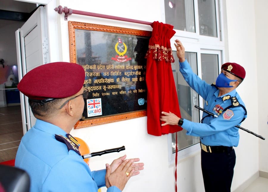 रुपन्देही । प्रहरी महानिरीक्षक शैलेश थापा क्षेत्रीले लुम्बिनी प्रदेश प्रहरी तालिम केन्द्र बुटवल रुपन्देहीको परिसरमा नवनिर्मित बहुउद्देश्यीय भवनको बिहीबार आयोजित एक कार्यक्रमबीच उद्घाटन गर्नुभयो । उहाँले उक्त भवनको निरीक्षण गर्नुका साथै सोही परिसरभित्र वृक्षरोपण समेत गर्नुभयो । उक्त अवसरमा �. . .