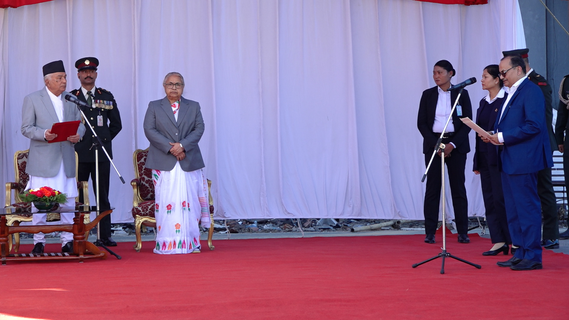 काठमाडौं । मधेश प्रदेशका नवनियुक्त प्रदेश प्रमुख सुरेन्द्र लाभ कर्णले पद तथा गोपनियताको शपथ लिएका छन् । मंगलबार राष्ट्रपति रामचन्द्र पौडेलले राष्ट्रपति भवन शीतल निवासमा उनलाई पद तथा गोपनियताको शपथ खुवाएका हुन् । सोमबार बसेको मन्त्रिपरिषद् बैठकले कर्णलाई मधेस प्रदेश प्रमुखमा नियुक्त गरेको थियो . . .
