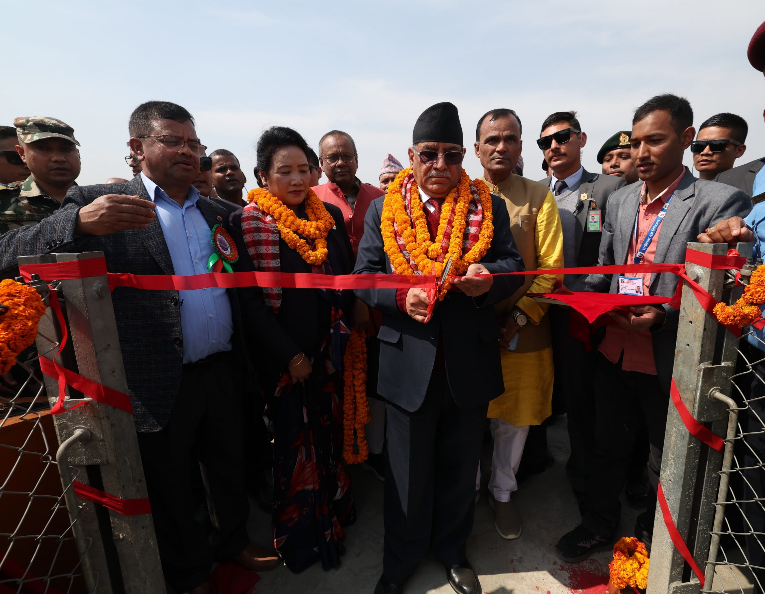काठमाडौं । प्रधानमन्त्री पुष्पकमल दाहालले कमला नदीमा निर्माण भएको झोलुङ्गे पुलको उद्घाटन गरेका छन् । सिराहा नगरपालिका १३ मल्हनीया र जनकनन्दिनी गाउँपालिका ६ कठाल जोड्ने गरी निर्माण गरिएको कठाल–मल्हनिया–मल्टिस्पान झोलुङ्गे पुलको प्रधानमन्त्री दाहालले शनिबार सिरहा पुगेर उदघाटन गरेका हुन् । झन्ड. . .