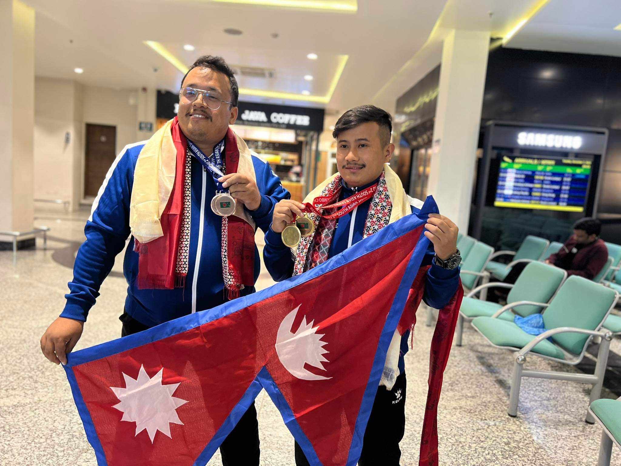 काठमाडौँ । दोस्रो दक्षिण एसियाली साम्बो च्याम्पियनसिपमा पदक जित्ने नेपाली टोली आज स्वदेश फर्किएका छन् । बङ्गलादेशको राजधानी ढाकामा यही कात्तिक १३ देखि १९ गतेसम्म भएको उक्त प्रतियोगितामा रबिन्स तामाङले नेपाललाई दुई स्वर्ण पदक दिलाएका थिए । उक्त च्याम्पियनसिपको सिनियर ५८ केजी तौल समूहमा कम्ब्याट �. . .