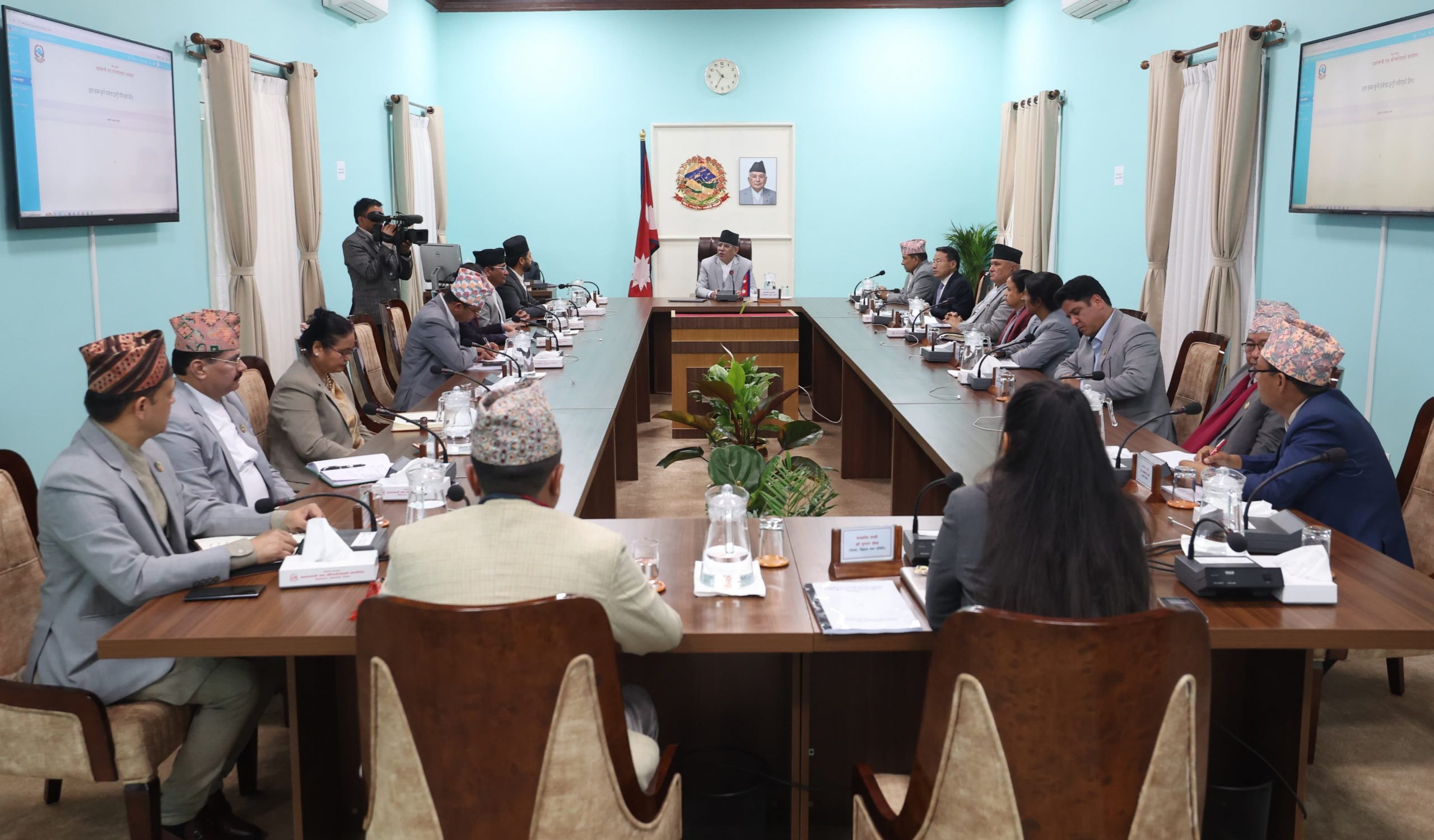 काठमाडौं । सरकारका नवनियुक्त मन्त्रीहरुले पद तथा गोपनीयताको शपथ लिएका छन् । राष्ट्रपतिको सरकारी निवास शीतल निवासमा आयोजित विशेष समारोहमा राष्ट्रपति रामचन्द्र पौडेलले नवनियुक्त जना १६ जना मन्त्रीहरुलाई सपथ ग्रहण गराएका हुन् । सोमबार तीन जनाले विना विभागीय मन्त्रीको शपथ लिएर चार सदस्यीय मन्त्र�. . .