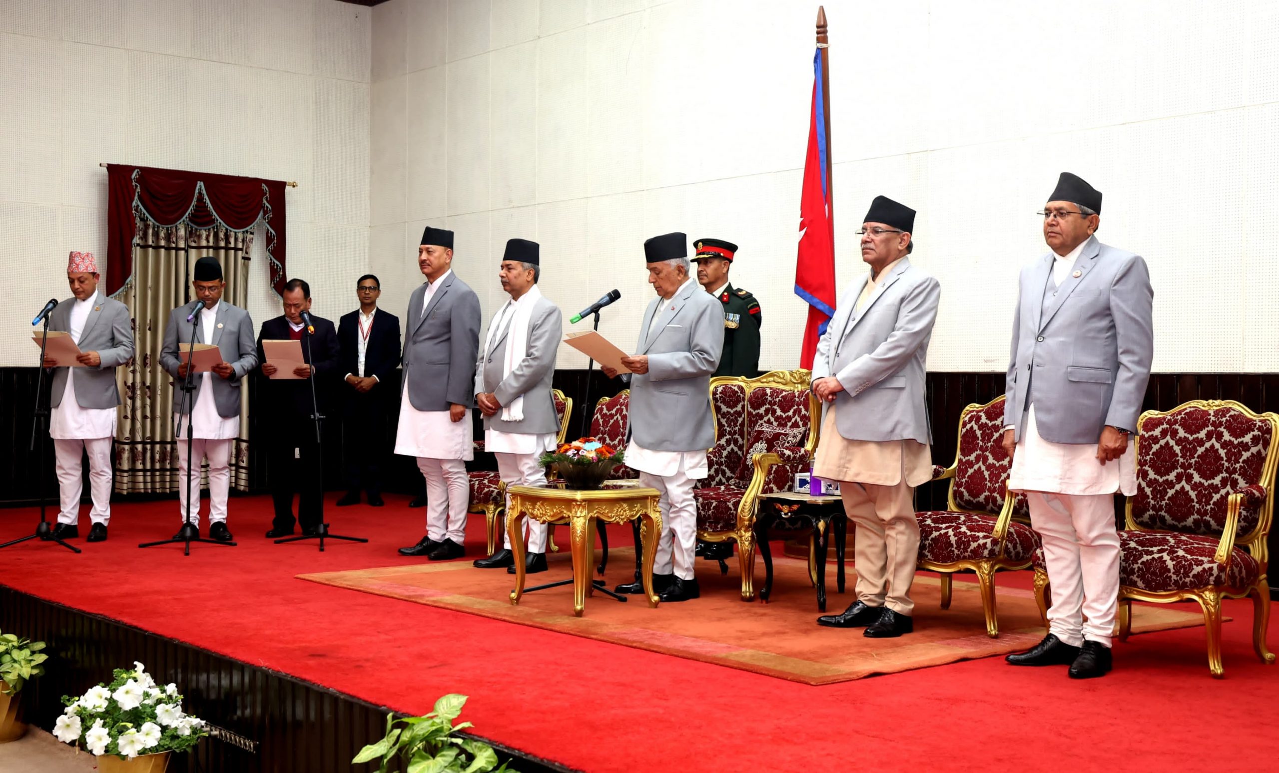 काठमाडौं । नयाँ सत्ता समीकरणसँगै नवनियुक्त तीन मन्त्रीले पद तथा गोपनीयताको शपथ लिएका छन् । सोमबार राष्ट्रपति कार्यालय शितलनिवासमा बिना विभागीय मन्त्रीहरूमाओवादी केन्द्रका हितबहादुर तामाङ, एमालेका पदम गिरी र रास्वपाका डोलप्रसाद अर्यालले शपथ लिएका हुन् । गत वर्ष पुस १० गते एमाले सरकारमा सहभागी ह�. . .