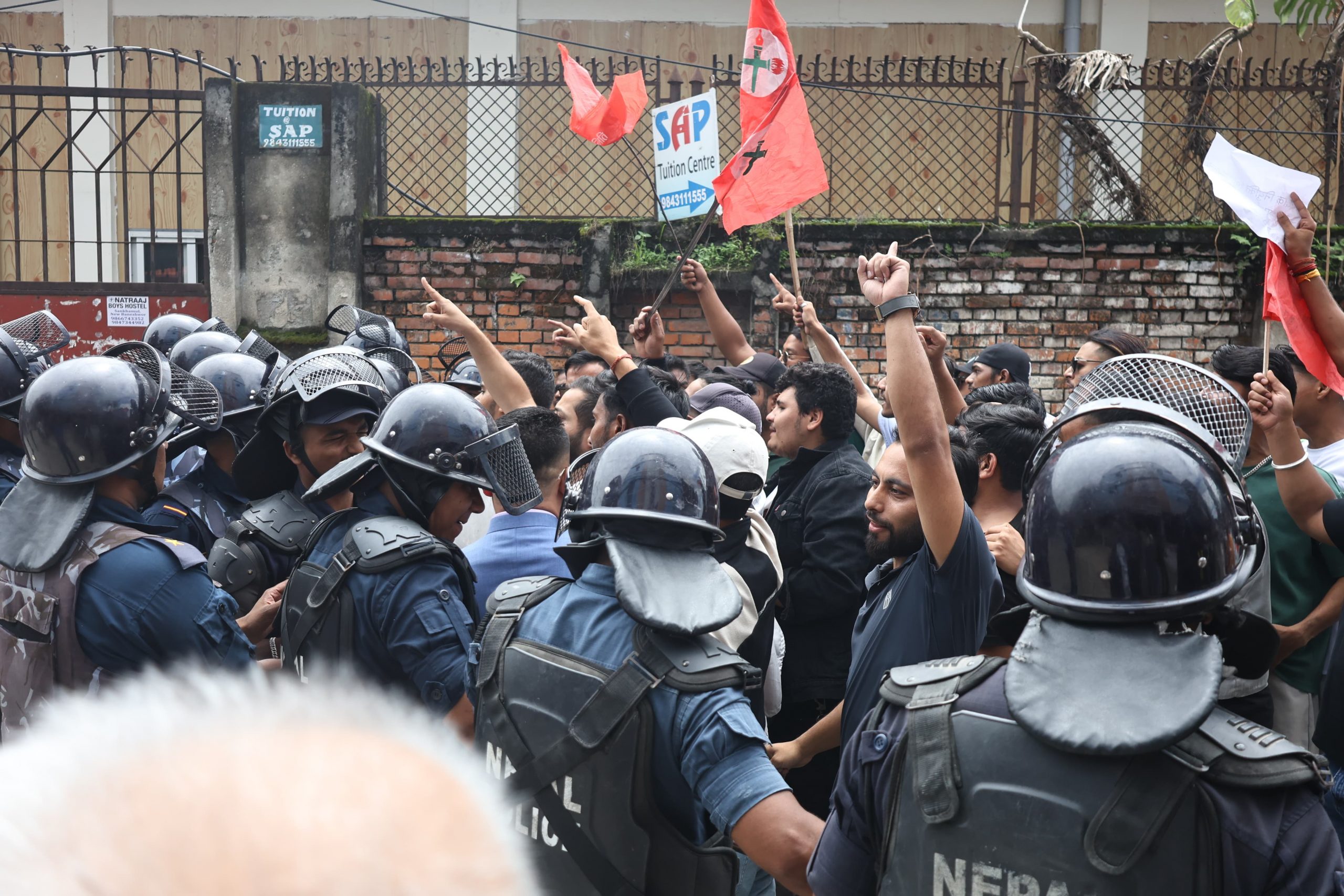 काठमाडौं । सत्तारुढ दल नेपाली कांग्रेसको भ्रातृ संगठन नेपाल विद्यार्थी संघ (नेविसंघ)ले नयाँ बानेश्वरमा निषेधित क्षेत्र तोड्न खोजेपछि प्रदर्शनकारी पक्राउ परेका छन् । नेवि संघ बानेश्वर बहुमुखी क्याम्पस इकाई समिति र नेपाल कमर्स क्याम्पस इकाई समितिको संयोजकत्वमा संसद भवन अगाडि उनीहरु पक्राउ परेका हु. . .