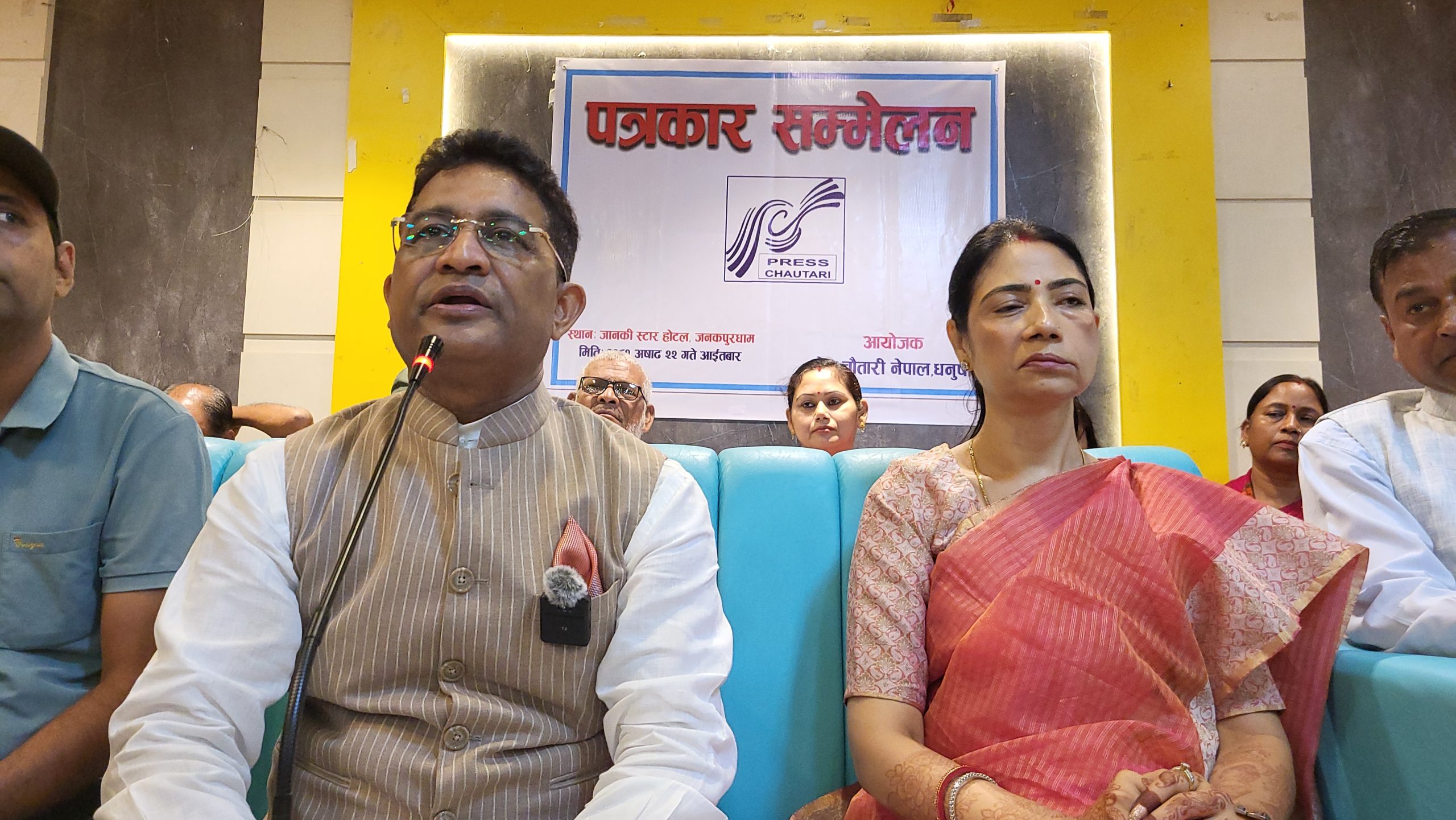 जनकपुर । नेकपा एमालेका नेता एवम प्रतिनिधिसभा सदस्य रघुवीर महासेठले कांग्रेस नेता बिमलेन्द्र निधिमाथि दर्जन बढी आरोप लगाएका छन् । आइतबार जनकपुरधाममा पत्रकारसम्मेलनमार्फत महासेठले नेता निधिले जनकपुरधामको विकासमा अवरोध गरेको आरोप लगाए । जनकपुरधामको रिङ्ग रोड निर्माणदेखि डम्पिङ्ग साइट निर्माण ज. . .