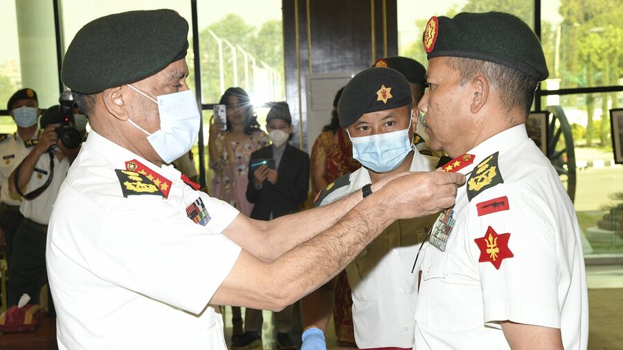काठमाडौं । प्रधानसेनापति प्रभुराम शर्माले रथीमा पदोन्नति हुनुभएका सरोजप्रताप राणालाई दर्ज्यानी चिह्न प्रदान गर्नुभएको छ । सैनिक मुख्यालय जङ्गी अड्डामा आज आयोजित समारोहमा महारथी शर्माले रथी राणालाई दर्ज्यानी चिह्न लगाइ बढुवा गर्ने निर्णय गरेको थियो । रथी राणालाई बलाध्यक्षको जिम्मेवारी प्रदान . . .