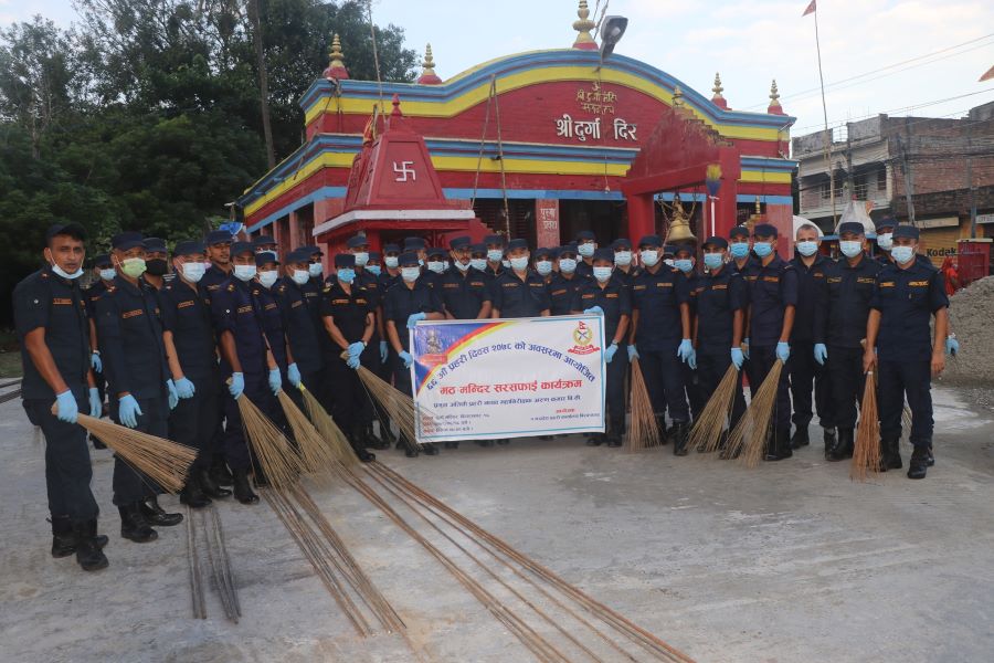 विराटनगर। "६६ औँ प्रहरी दिवस २०७८" को अवसरमा गरिने बिभिन्न कार्यक्रम अन्तर्गत विराटनगर महानगरपालिका १६ मा रहेको दुर्गा मन्दिरमा सरसफाई कार्यक्रम सम्पन्न गरिएको छ । उक्त कार्यक्रम प्रदेश नम्बर १ प्रहरी कार्यालय विराटनगरको आयोजनामा सम्पन्न गरिएको हो ।. . .