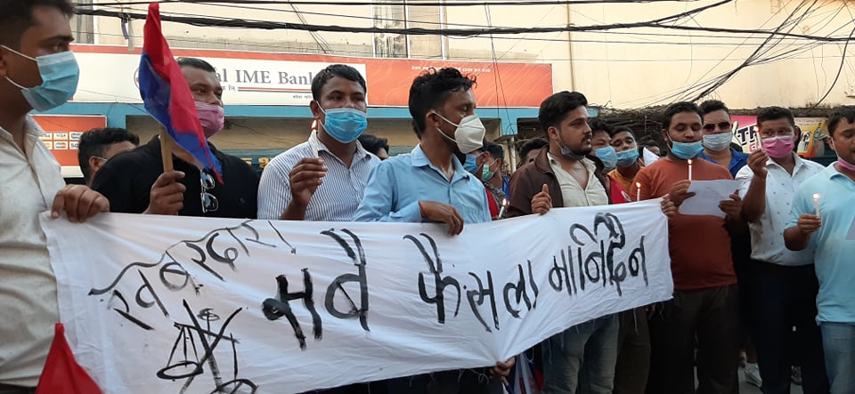 विराटनगर । सर्वोच्च अदालतले प्रतिनिधिसभा बिघटन बदर गरेपछि त्यसको विरोधमा राष्ट्रिय युवा संघ नेपालले विराटनगरमा प्रदर्शन गरेका छन् । प्रधानमन्त्रीको सिफारिसमा राष्ट्रपतिले गत जेठ ७ गते प्रतिनिधिसभा बिघटन गरेर निर्वाचन घोषणा गरिएको थियो । त्यसको विरुद्ध सर्वोच्चमा परेको रिट उपर सोमबार सर्वोच्च �. . .