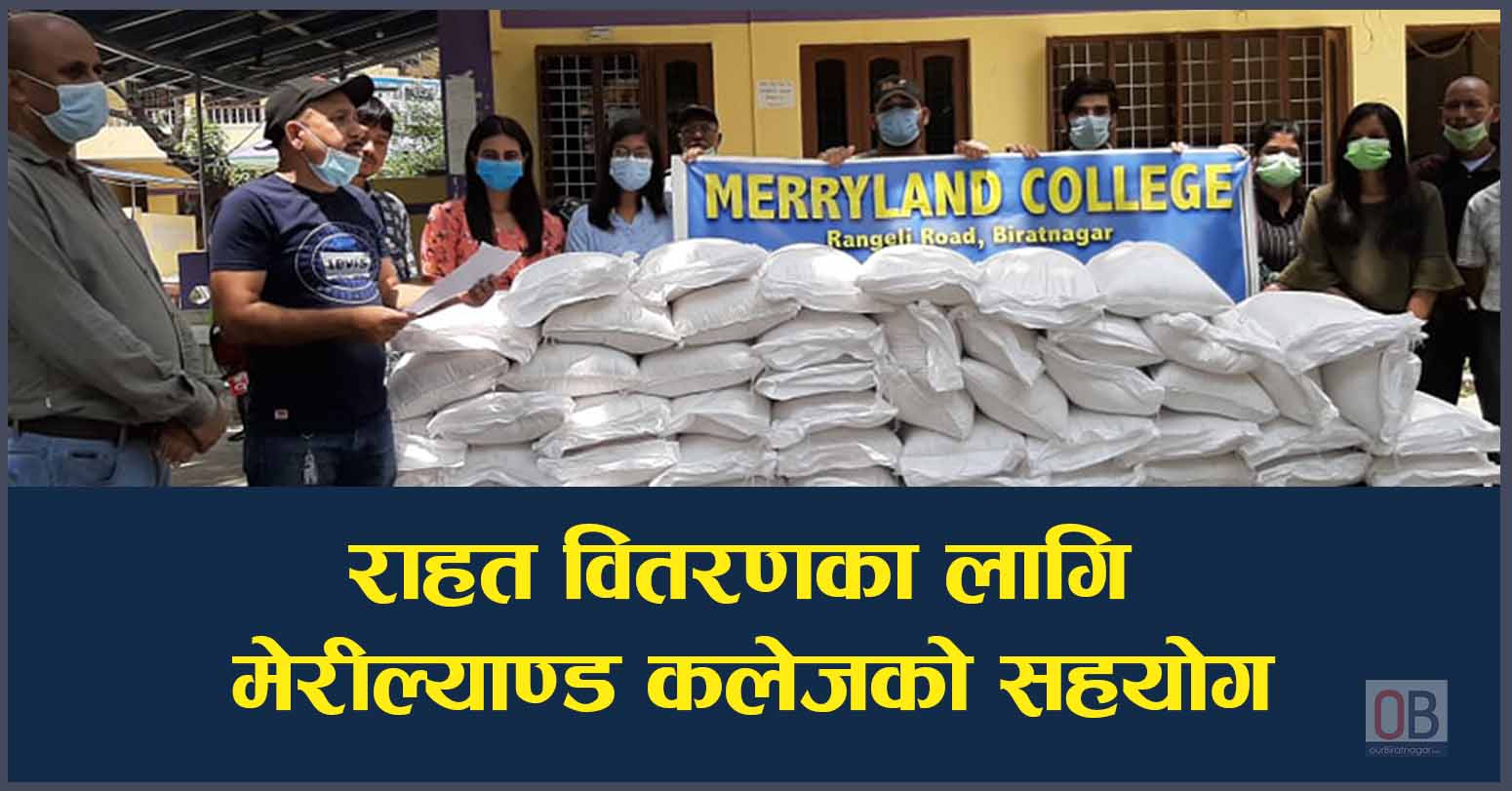 विराटनगर । विराटनगर रङ्गेली रोडमा रहेको मेरील्याण्ड कलेज विराटनगरले सामाजिक उत्तरदायित्व वहन गर्दै लामो समय सम्म निषेधाज्ञामा पिल्छीएका अति विपन्न परिवारको लागी राहत सामाग्री हस्तान्तरण गरेको छ । कलेजले मंगलबार कलेज परिसरमा एक कार्यक्रमको आयोजना गरी ६० बोरा चामल विभिन्न सामाजिक कार्यमा खटिएका स. . .