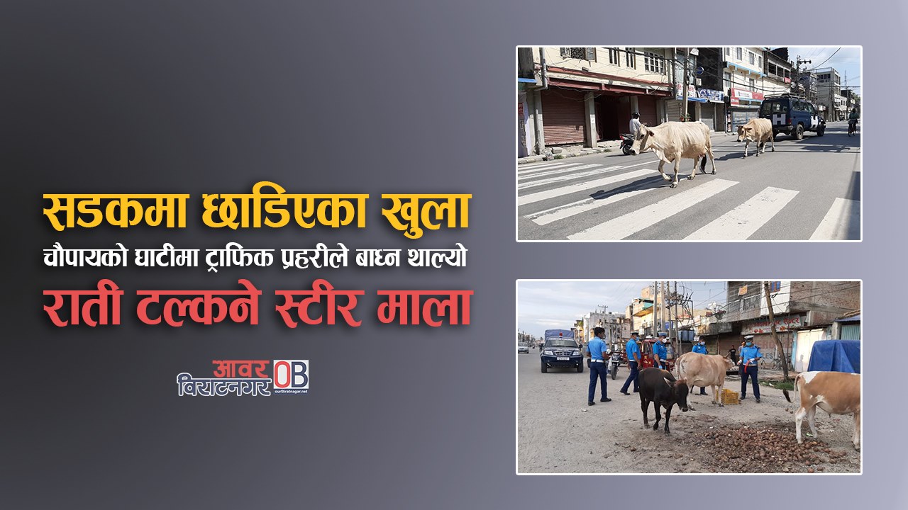 विराटनगर । विराटनगर महानगरभित्र खुला छाडिएका चौपायहरुका लागी ट्राफिक प्रहरीले रातमा टल्कने माला घाँटीमा बाध्न थालेको छ । बढ्दो सवारी दुर्घटना न्यूनिकरण गर्न यो अभियान विराटनगरमा सुरुवात गरिएको जिल्ला ट्राफिक प्रहरी कार्यालय मोरङका प्रहरी निरीक्षक राकेश कुमार पोद्धारले जानकारी दिनुभयो । महानग. . .