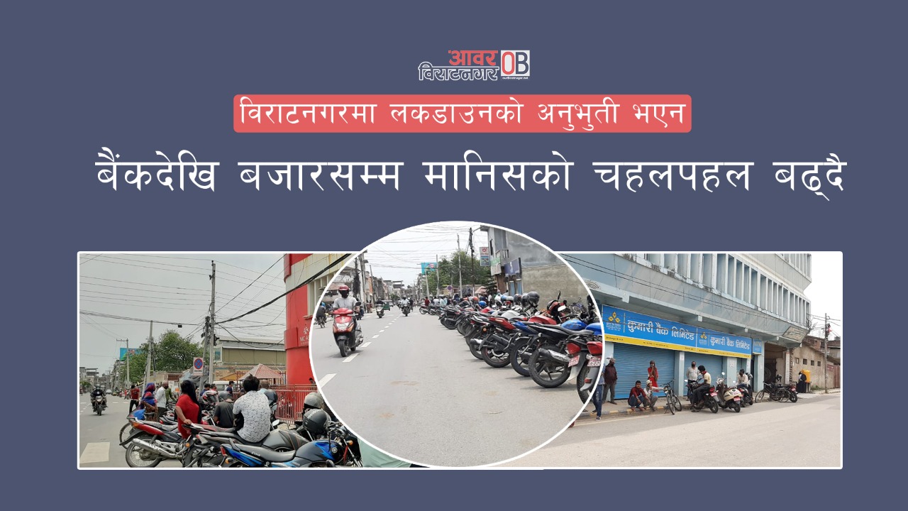विराटनगर बैशाख १४, सरकारले लकडाउन गरेसँगै विराटनगर लगायत देशभरका जनजीवन ठप्प छ यतिबेला । लकडाउनको भएको आज ३३ दिन पुगेको छ । विराटनगरमा अन्यदिन भन्दा केहि हप्ता देखि सर्वसाधरणको चहलपहल निकै बढेको देख्न सकिन्छ । प्रहरीले हिजो शनिबार देखि नै विराटनगरको सडकमा चलाइएका सिटी रिक्शा र टेम्पोलाई कडाई गर्न . . .