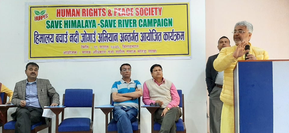 विराटनगर । विराटनगरमा रहेको हिमालय दर्शन कलेजमा ‘हिमाल बचाउँ नदी जोगाउँ ’ अभियान अन्र्तगत कलेजका विद्यार्थीहरुसँग एक दिने अन्र्तक्रिया कार्यक्रम गरिएको छ । मानव अधिकार तथा शािन्त समाज मोरङ शाखाले सोमबार आयोजना गरेको ‘हिमाल बचाउँ नदी जोगाउँ ’ अभियान कार्यक्रम गरिएको हो । कार्यक्रममा जलवायु परवर्�. . .