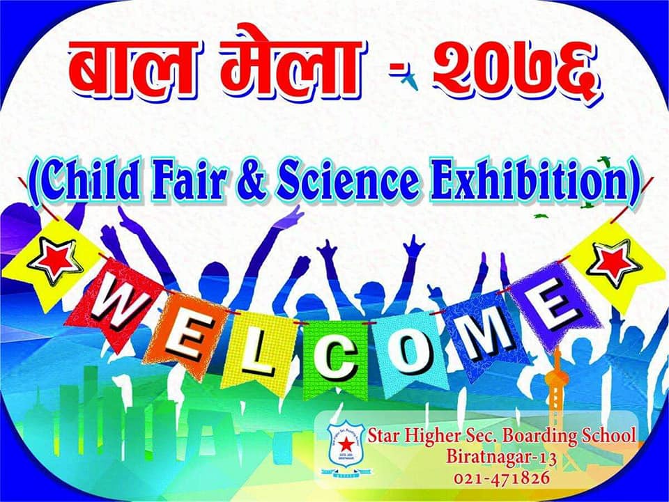 विराटनगर फाल्गुन १७ , विराटनगर वडा नम्बर १३ स्थित स्टार स्कुलको आयोजनामा आज बाल मेला साथै बिज्ञान प्रदर्शनी आयोजना हुने भएको छ । बाल मेला साथै बिज्ञान प्रदर्शनीमा बालबालिकालाई केन्द्रित गरेर बिभिन्न खेलका साथै मनोरन्जनात्मक कार्यक्रम आयोजना गरिने स्कुलकि भाइस प्रिन्सिपल मुनु पोखरेलले बताइन । कार�. . .