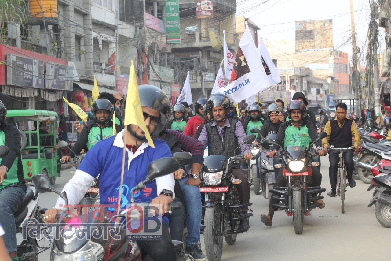 विराटनगर । नेपाल अग्रवाल युवा मञ्च विराटनगरको आयोजनामा हुन लागेको मारवाडी प्रिमियर लिगको सातौं संस्करणको पूर्व सन्ध्यामा आज मोटरसाइकल र्याली निकालिएको छ । र्यालीको उद्घाटन नेपाल अग्रवाल सभाका अध्यक्ष देवकिनन्दन अग्रवालले गरेका थिए । विराटनगरको अतिथी सदनबाट निकालिएको मोटरसाईल ¥याली ट्राफिक चोक, �. . .