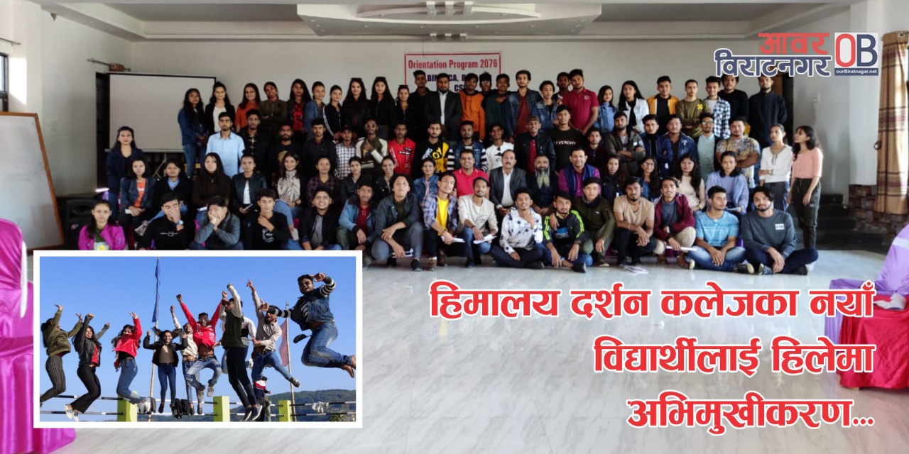 विराटनगर, २० कात्तिक । विराटनगरको हिमालय दर्शन कलेजले वि.एस.सि. सिएसआइटि छैटौँ ब्याच, वि.आइ.एम तथा वि.सि.ए दोस्रो ब्याच तथा वि.एच.एम. प्रथम व्याचमा नयाँ भर्ना हुने विद्यार्थीलाई अभिमुखिकरण कार्यक्रम गरेको छ । कलेजले विभिन्न विषय अन्र्तगत भर्ना भएका नयाँ विद्यार्थीहरुलाई धनुकटाको हिलेमा लगेर अभिमुखिकरण. . .