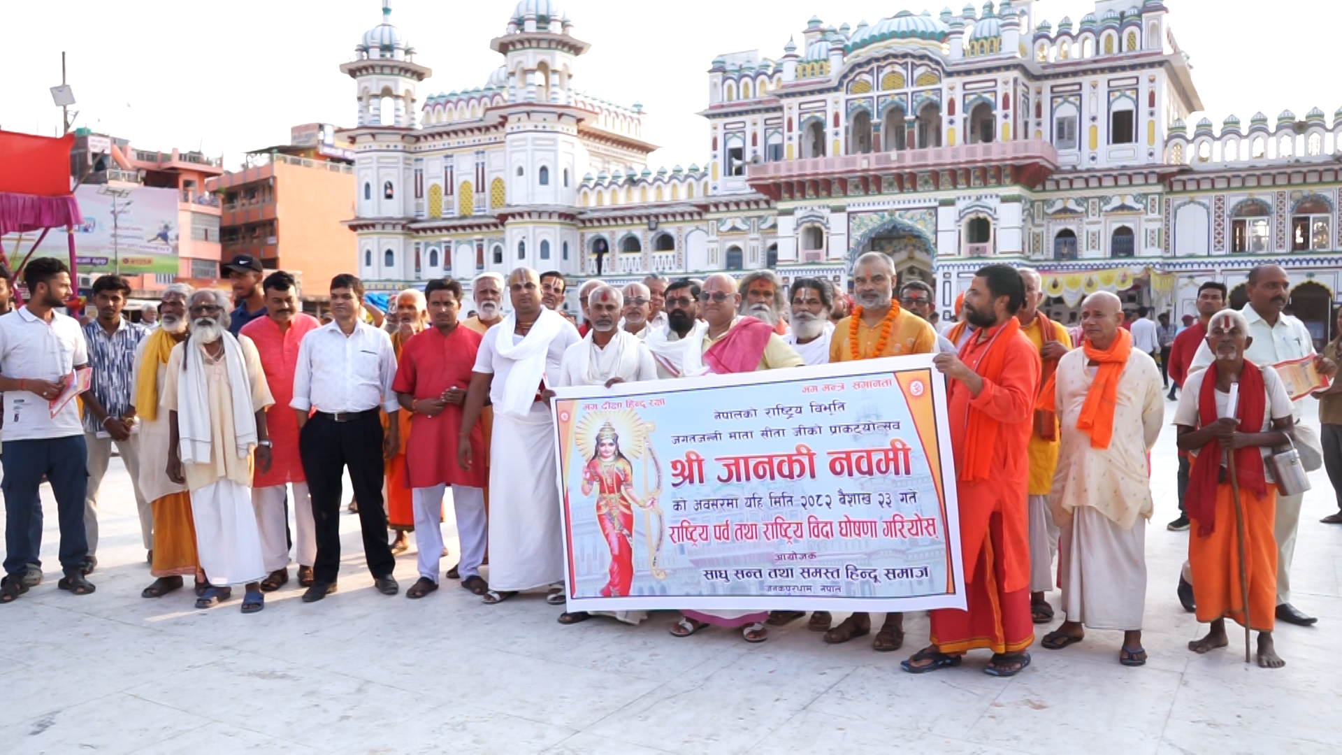 जनकपुर । जानकी नवमी राष्ट्रिय पर्वको मान्यता दिनुपर्ने माग गर्दै शनिवार जनकपुरधाममा एक दबाबमूलक र्याली निकालिएको छ । जानकी मन्दिर परिसरबाट सुरु भएको उक्त र्यालीमा साधु–सन्त, धर्मगुरु, विभिन्न धार्मिक संघसंस्था, नागरिक समाजका प्रतिनिधि तथा सर्वसाधारणको उल्लेख्य सहभागिता रहेको थियो । र्यालीम. . .